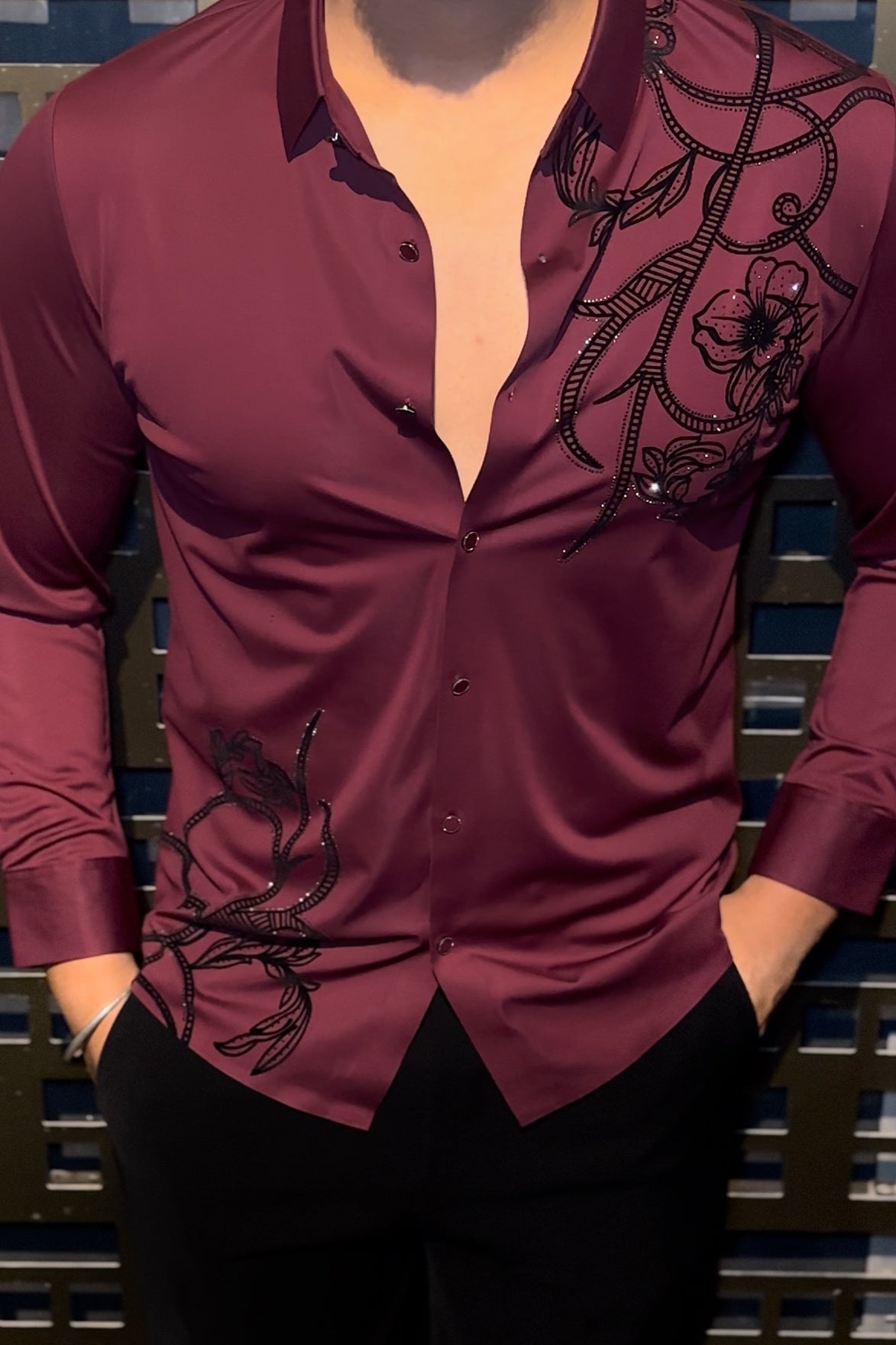 Elevated design with Jacquard detailing. This Shirt features delicate details on the garment, adding a refined touch to a classic silhouette. The collared neck, button-up front, and regular fit ensures a sharp and tailored appearance.