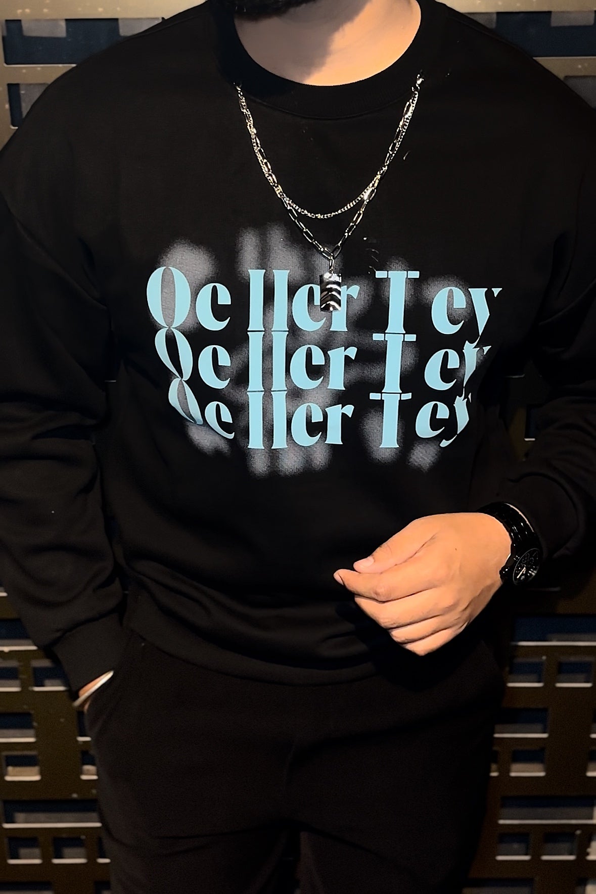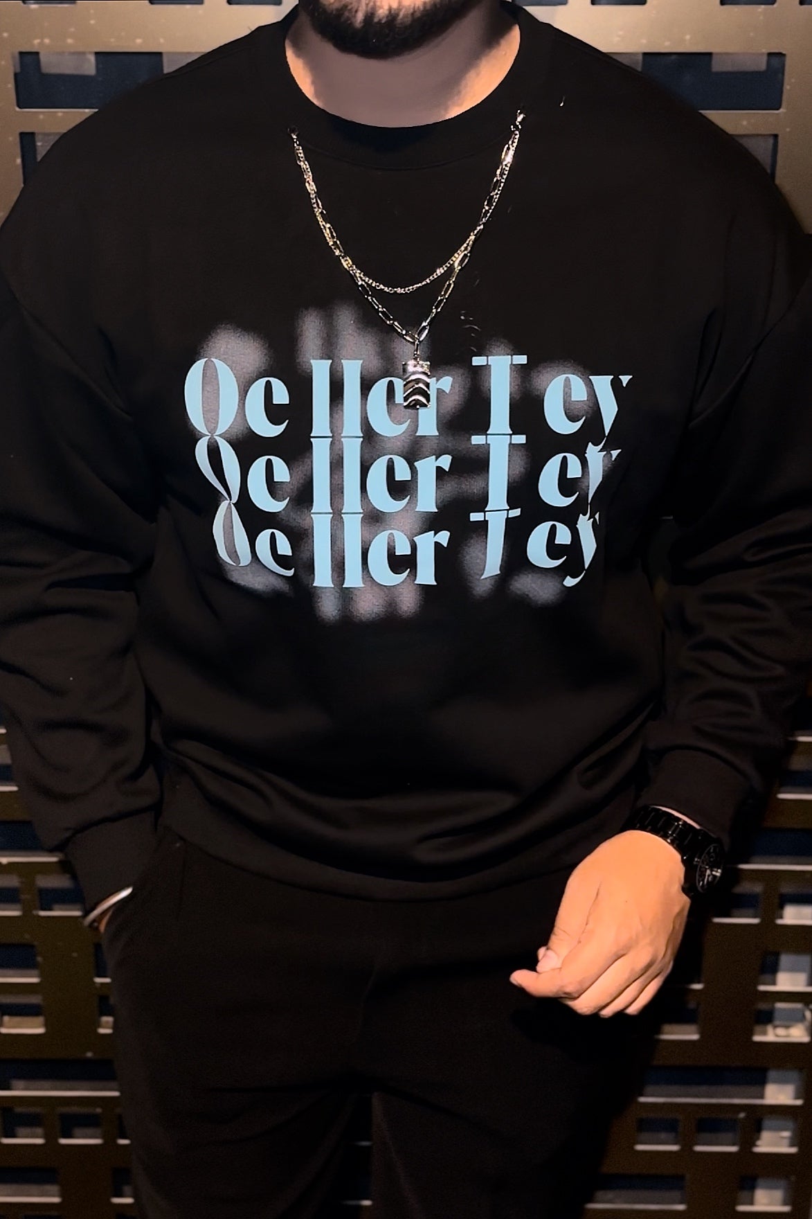 Design: Luxurious velvet sweatshirt with an abstract text pattern in shimmering silver and Swarovski embellishments.