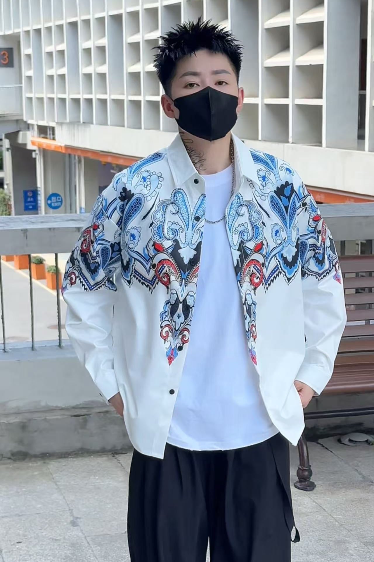 • Design: Luxurious shacket with a digital print abstract pattern embellishments.