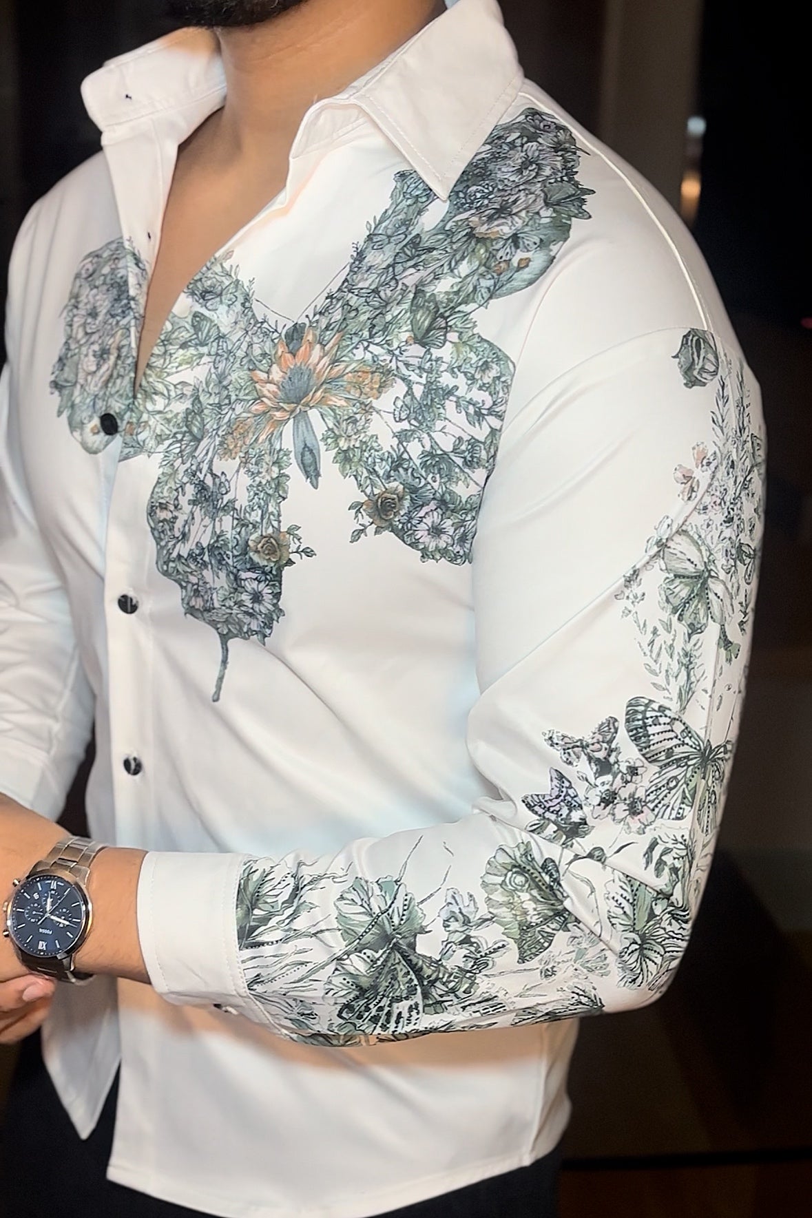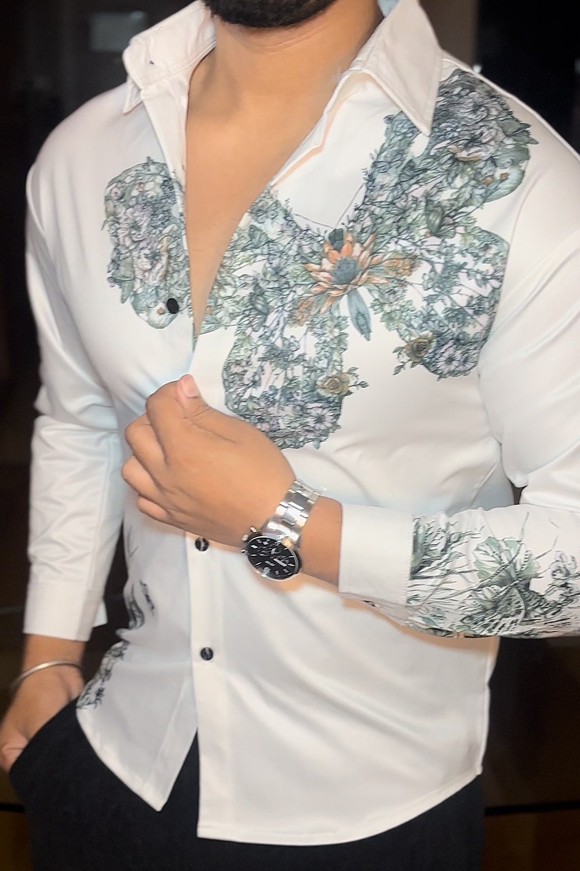 • Design: Luxurious shacket with a digital print abstract pattern embellishments.