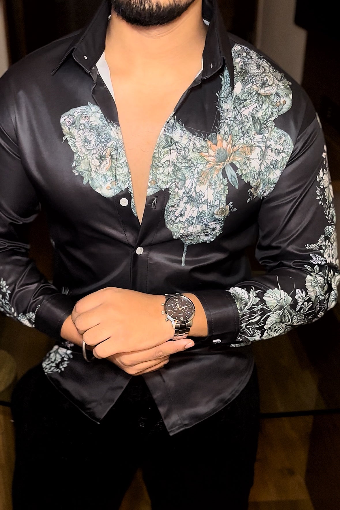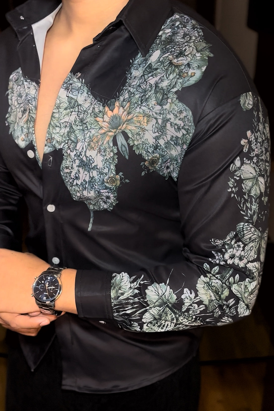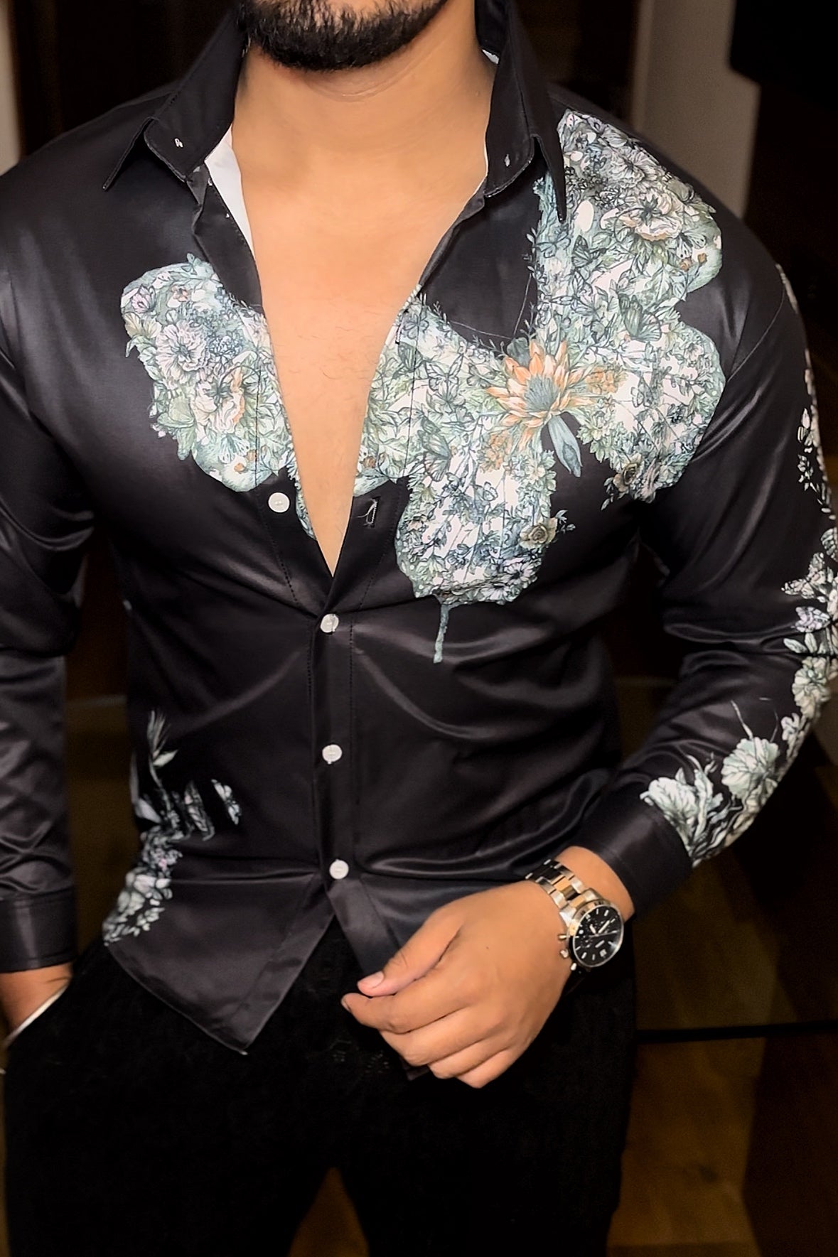 • Design: Luxurious shacket with a digital print abstract pattern embellishments.