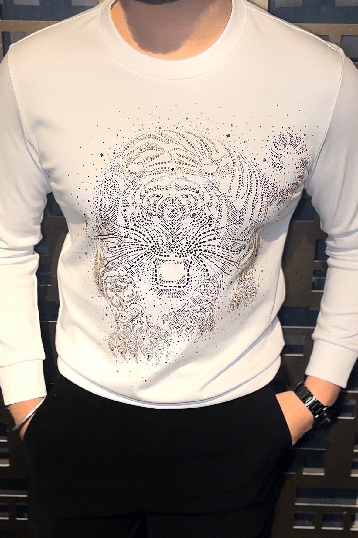 Tiger Roar Swarovski Sweatshirt - Ivory Silver