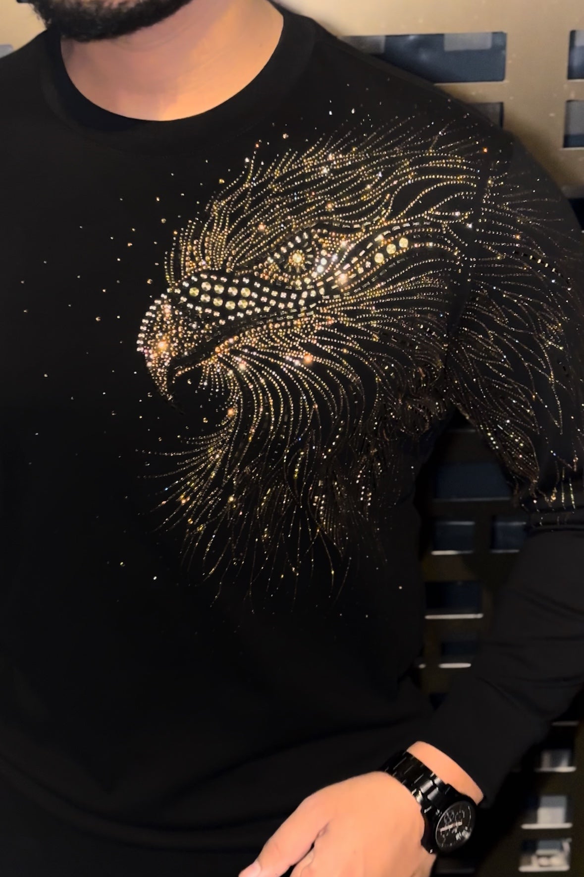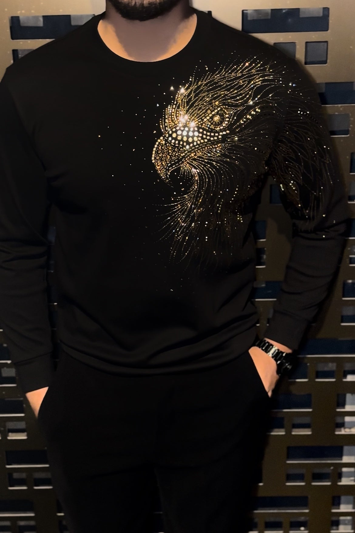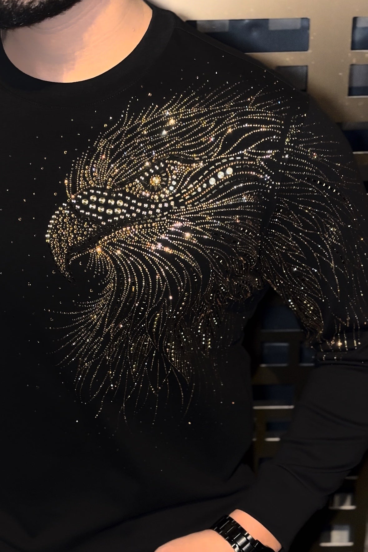 • Design: Luxurious  sweatshirt with an abstract lion pattern in shimmering silver and Swarovski embellishments.
