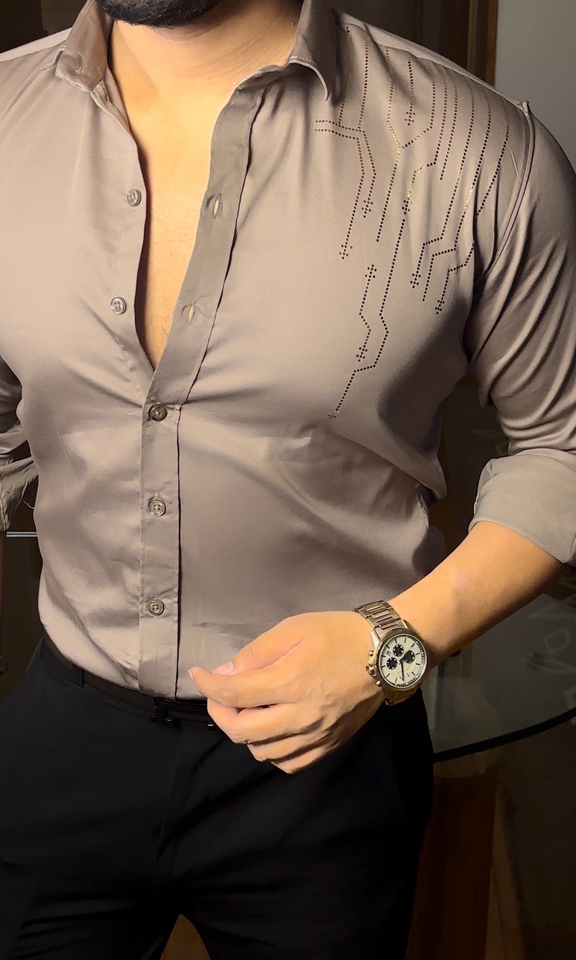 Unleash your bold side with the Under Attack NawaabZaade Premium Shirts Collection, featuring a dazzling Swarovski-inspired work that redefines sophistication. Crafted from ultra-premium fabric, this shirt offers unmatched comfort with a touch of luxe shine.