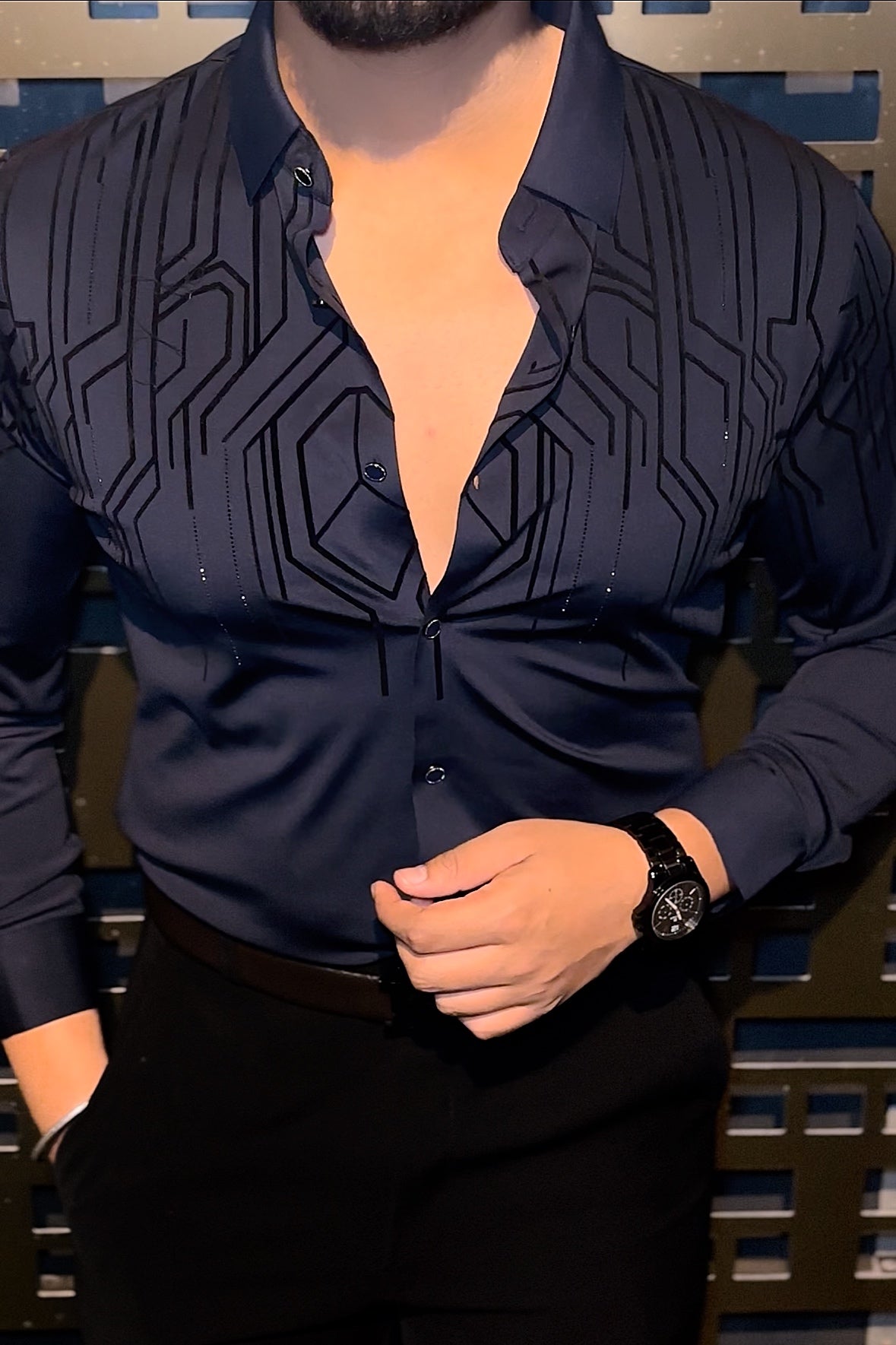 Elevated design with Jacquard detailing. This Shirt features delicate details on the garment, adding a refined touch to a classic silhouette. The collared neck, button-up front, and regular fit ensures a sharp and tailored appearance.
