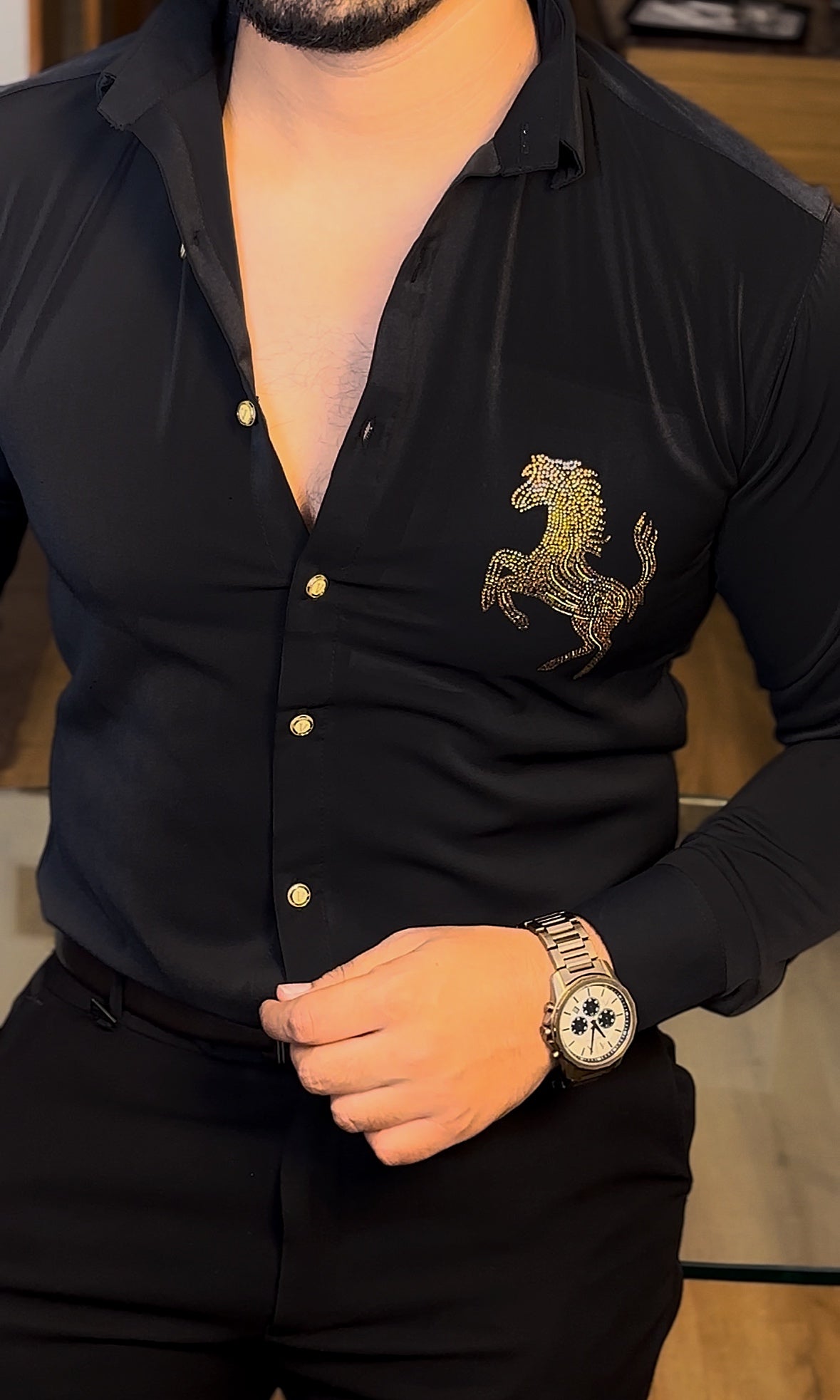 Unleash your bold side with the Under Attack NawaabZaade Premium Shirts Collection, featuring a dazzling Swarovski-inspired work that redefines sophistication. Crafted from ultra-premium fabric, this shirt offers unmatched comfort with a touch of luxe shine.