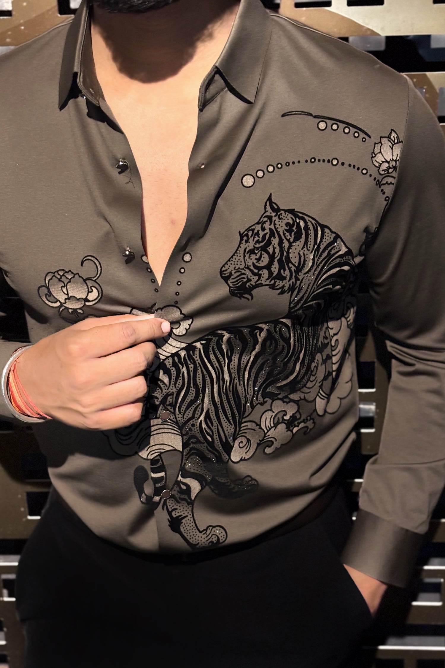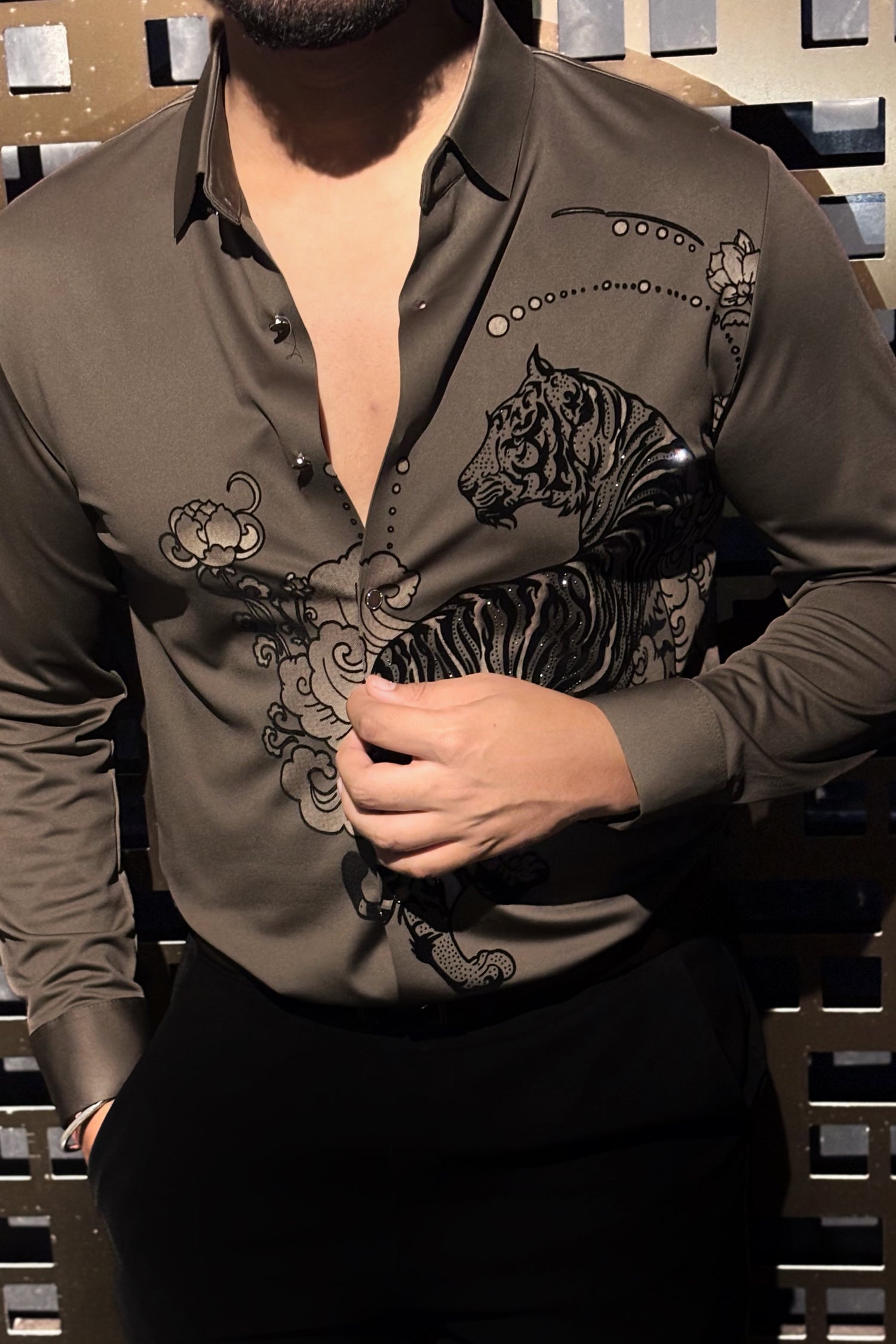 Jaguar Roar Jacquard Shirt - CAMEL