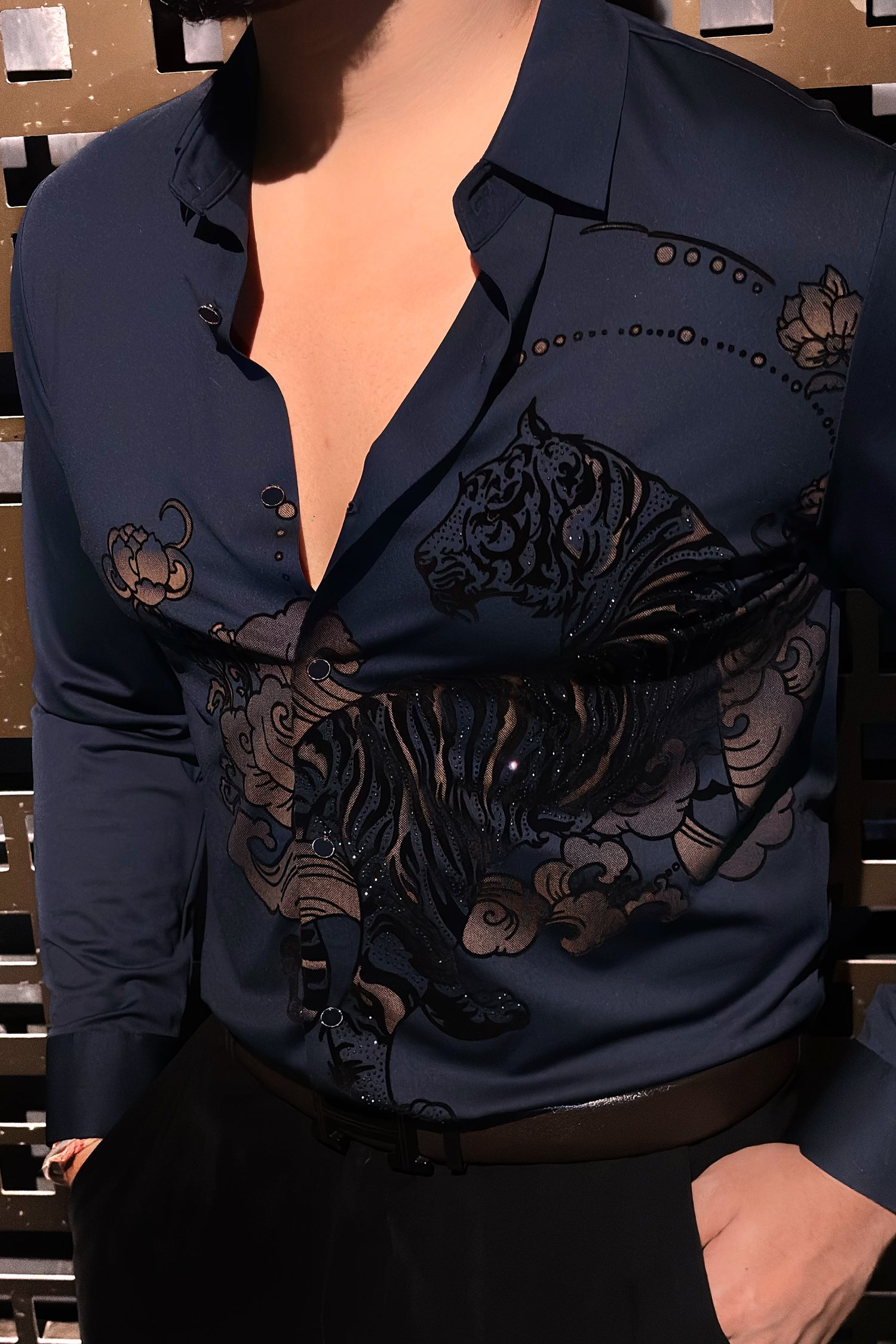 Elevated design with Jacquard detailing. This Shirt features delicate details on the garment, adding a refined touch to a classic silhouette. The collared neck, button-up front, and regular fit ensures a sharp and tailored appearance.