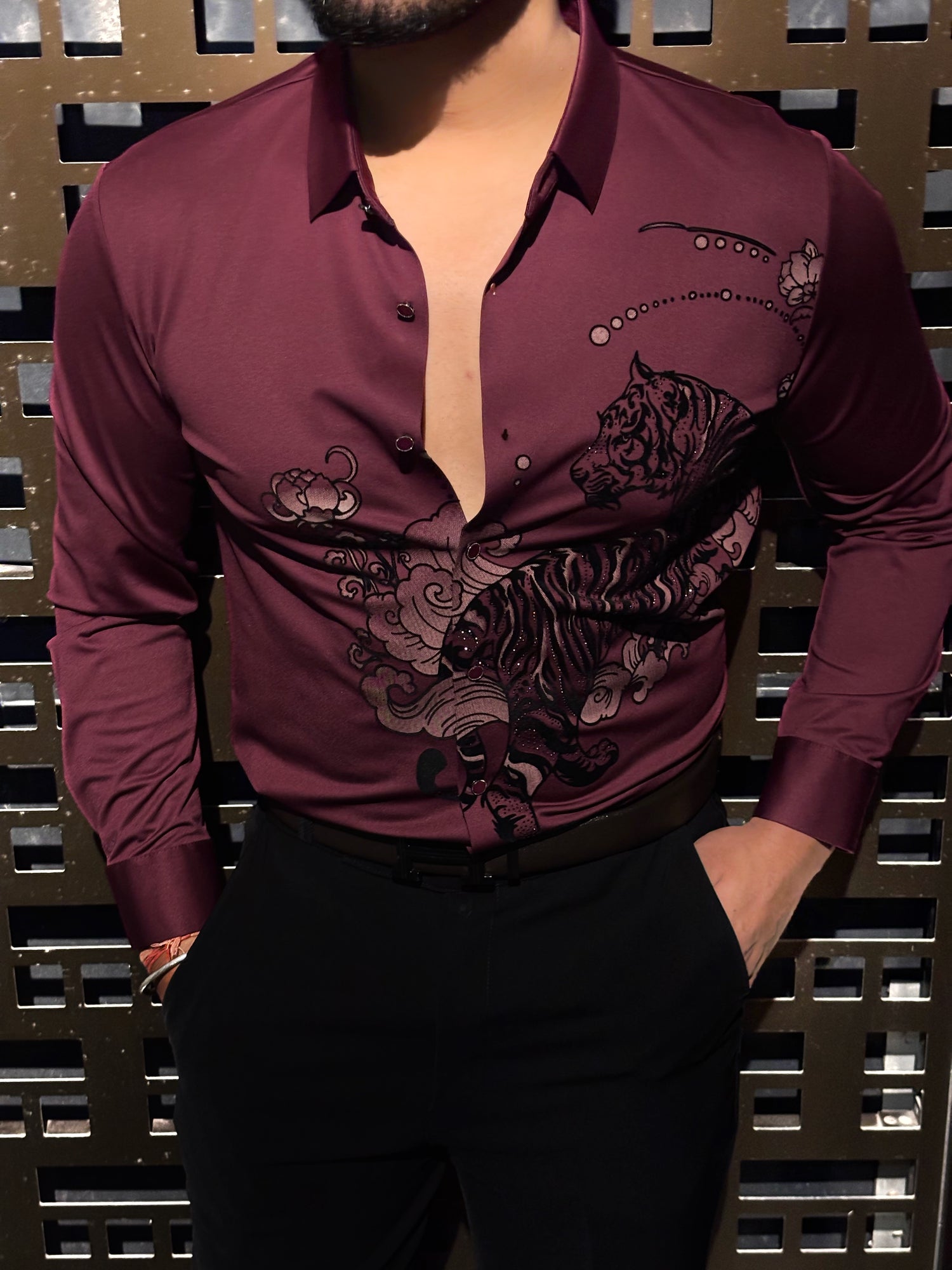 Elevated design with Jacquard detailing. This Shirt features delicate details on the garment, adding a refined touch to a classic silhouette. The collared neck, button-up front, and regular fit ensures a sharp and tailored appearance.
