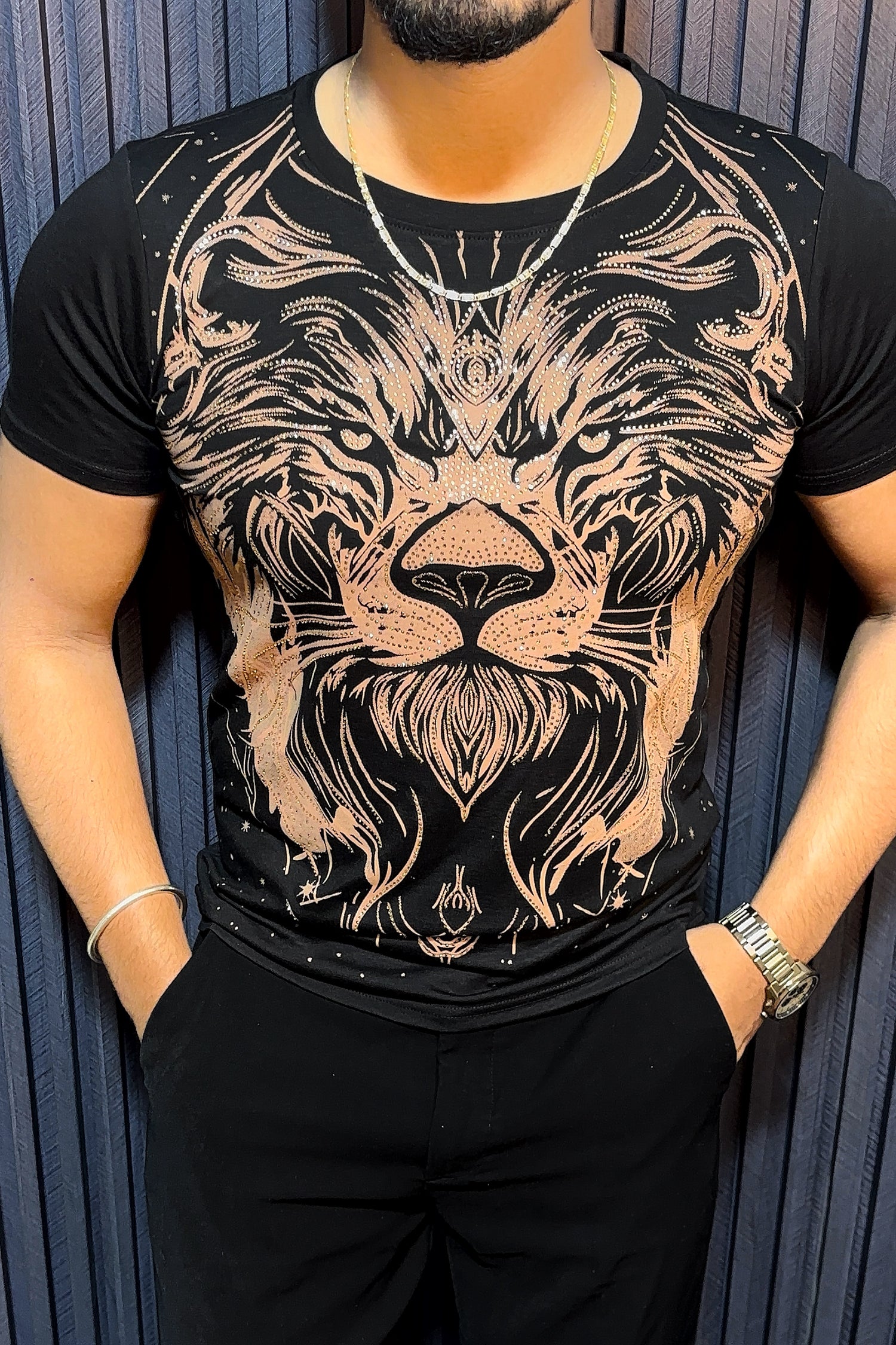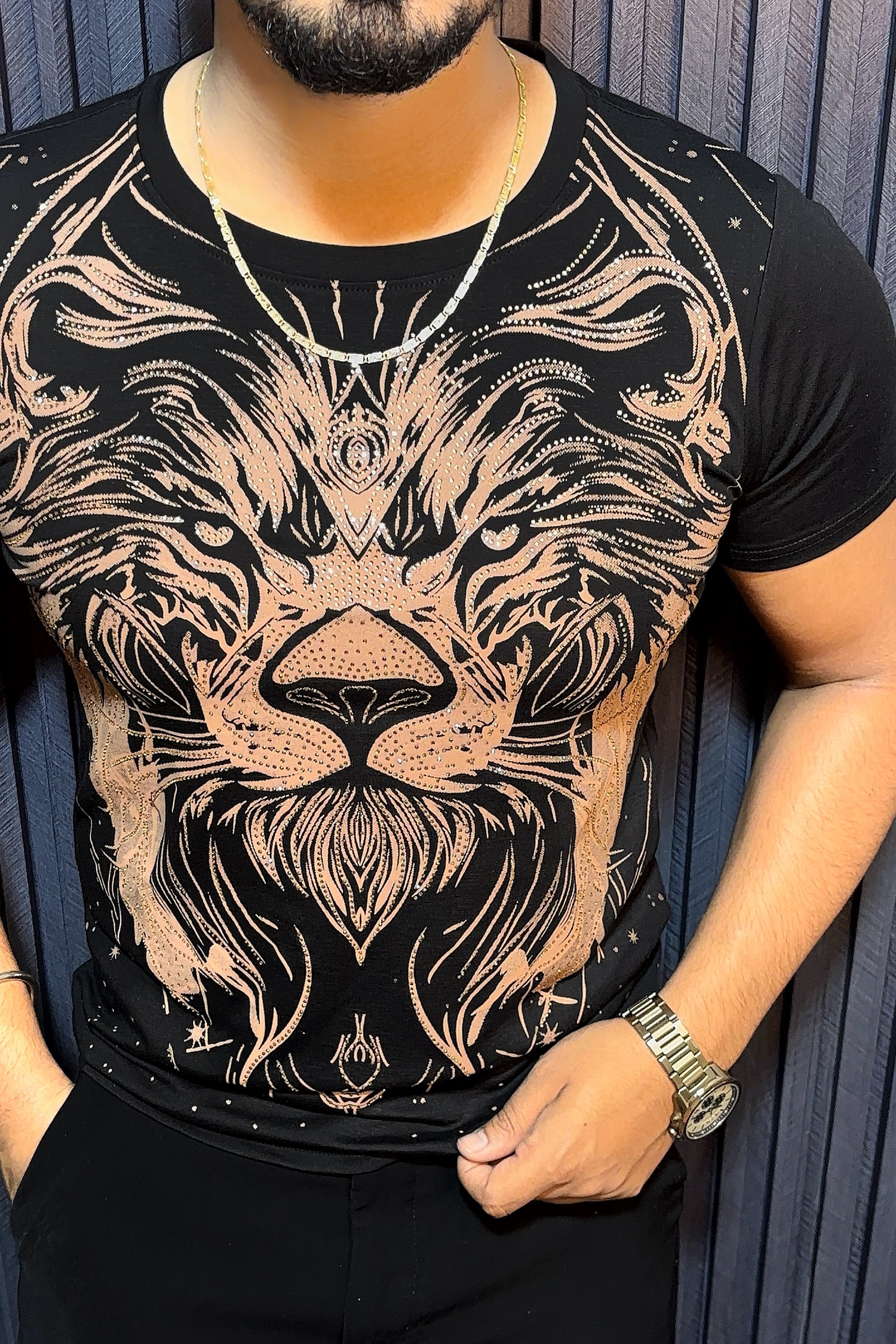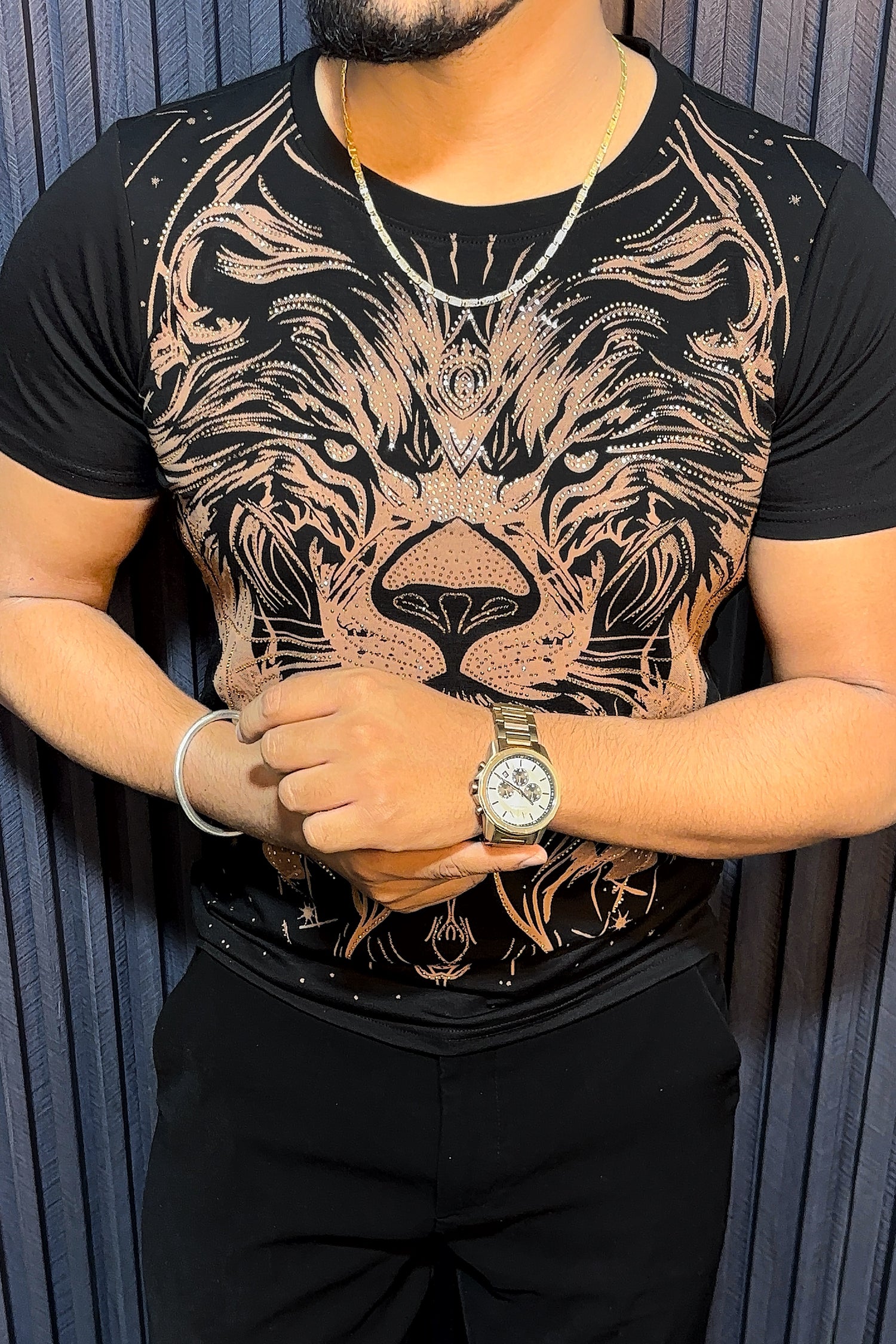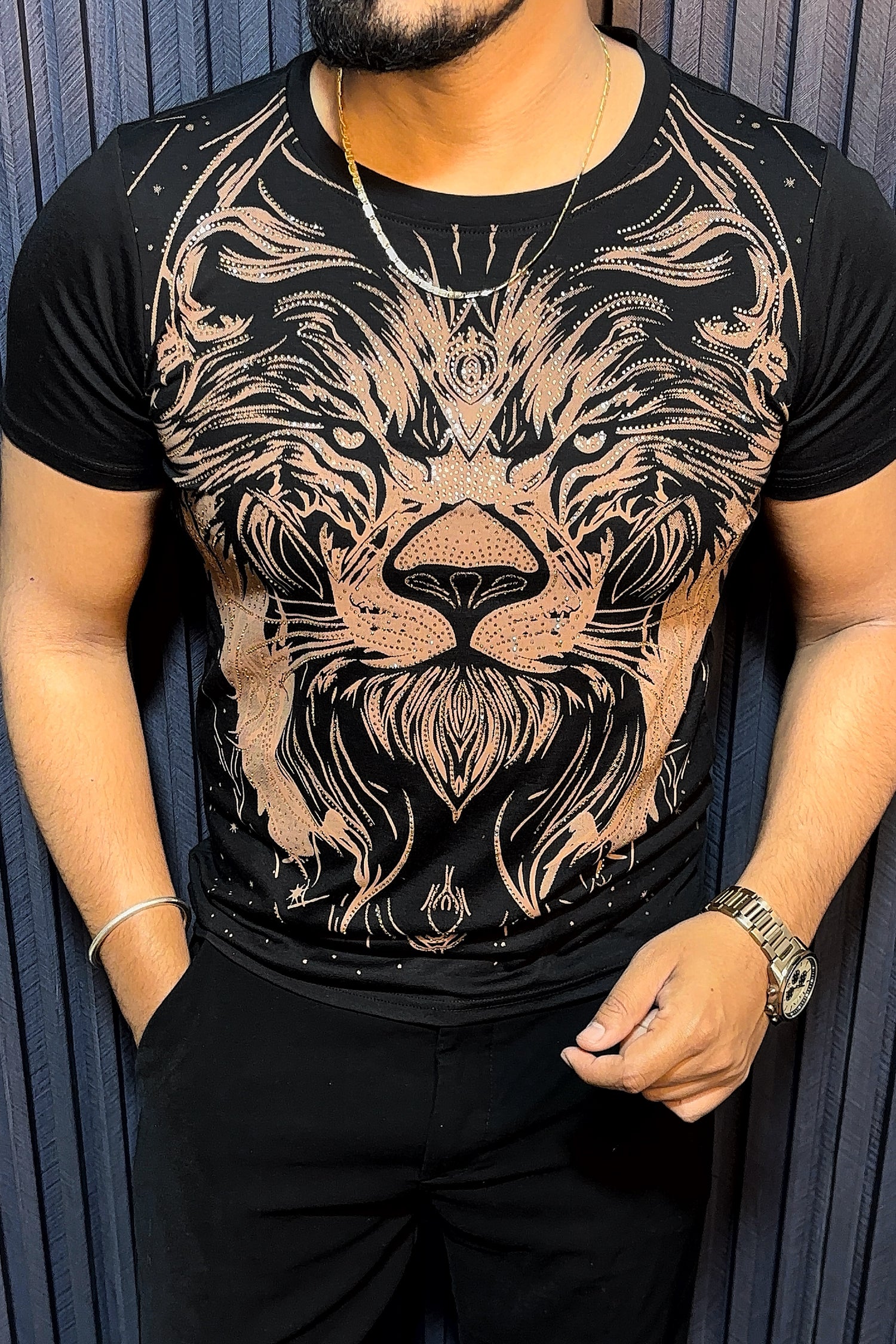 Lion Full Face Half Sleeves Tshirt - Black