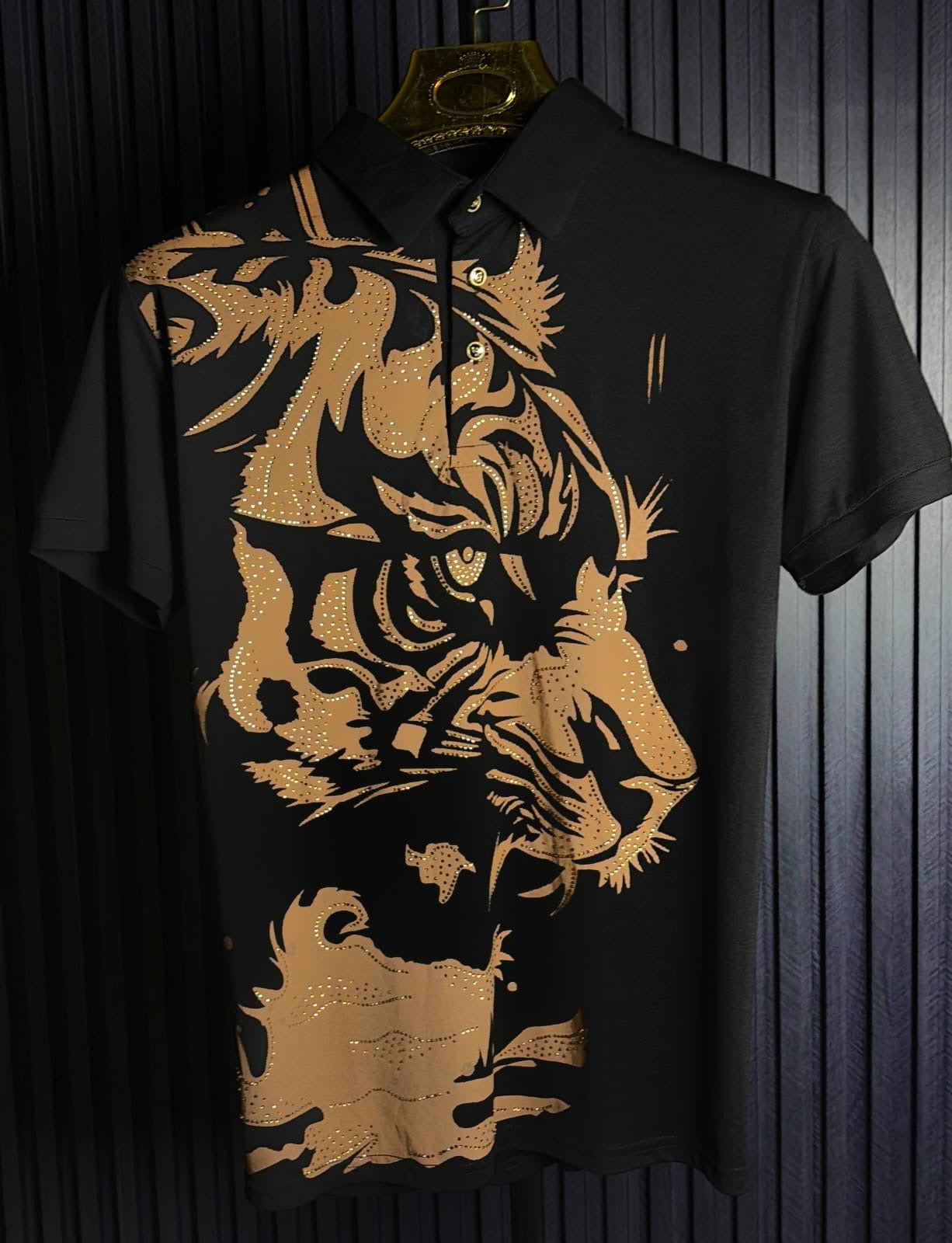 Lion Premium Half Sleeves Tshirt - Gold Black