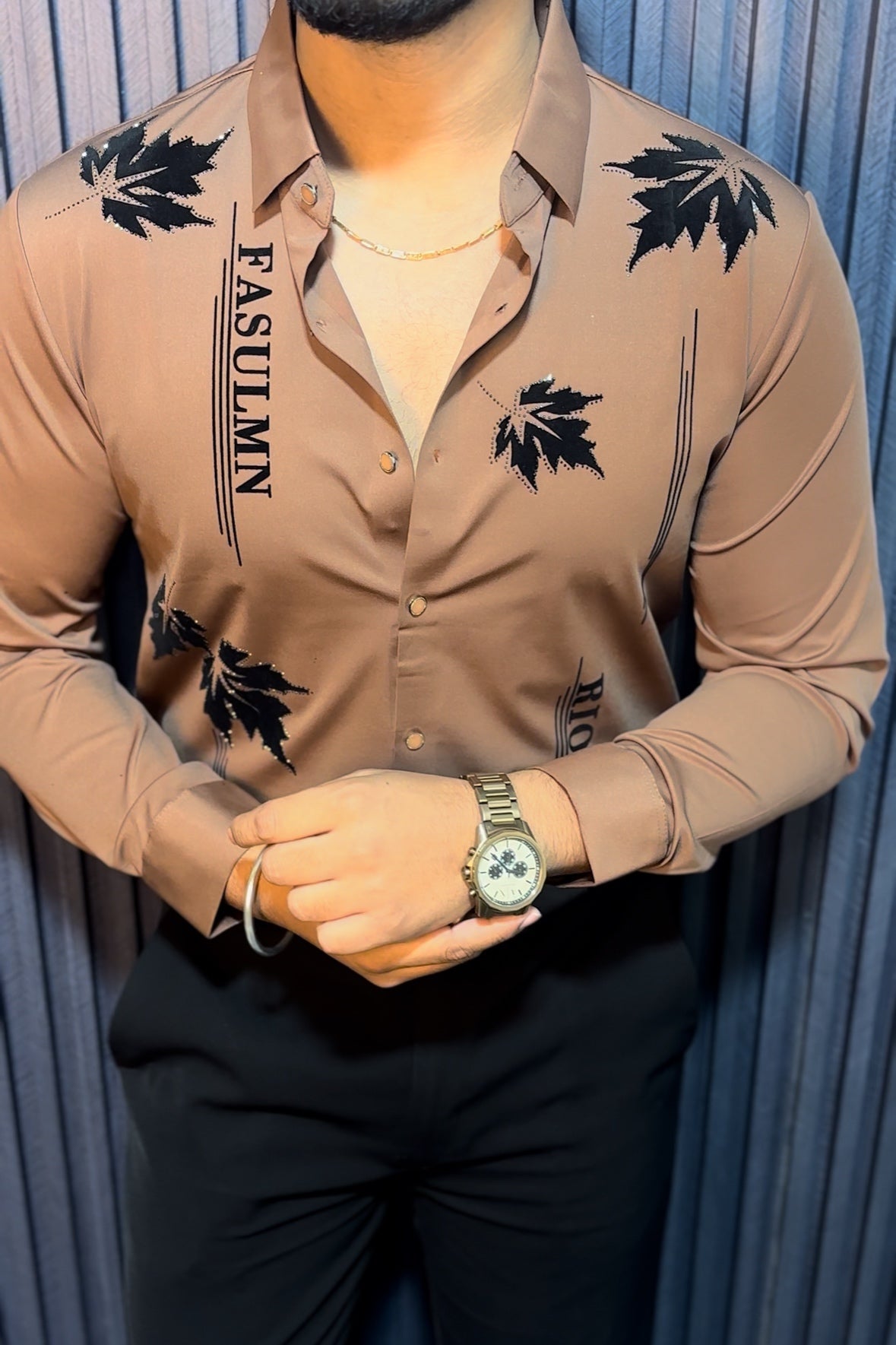 Crafted from premium fabric with a smooth, stitch-free finish, the shirt offers a sharp silhouette and elevated comfort. The subtle shine from the stonework catches light effortlessly, making it perfect for parties, celebrations, and standout evenings.