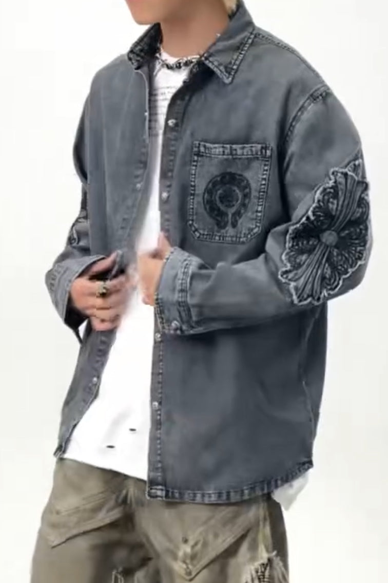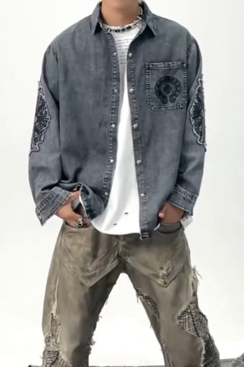 Snow Frost Denim Shacket - Grey