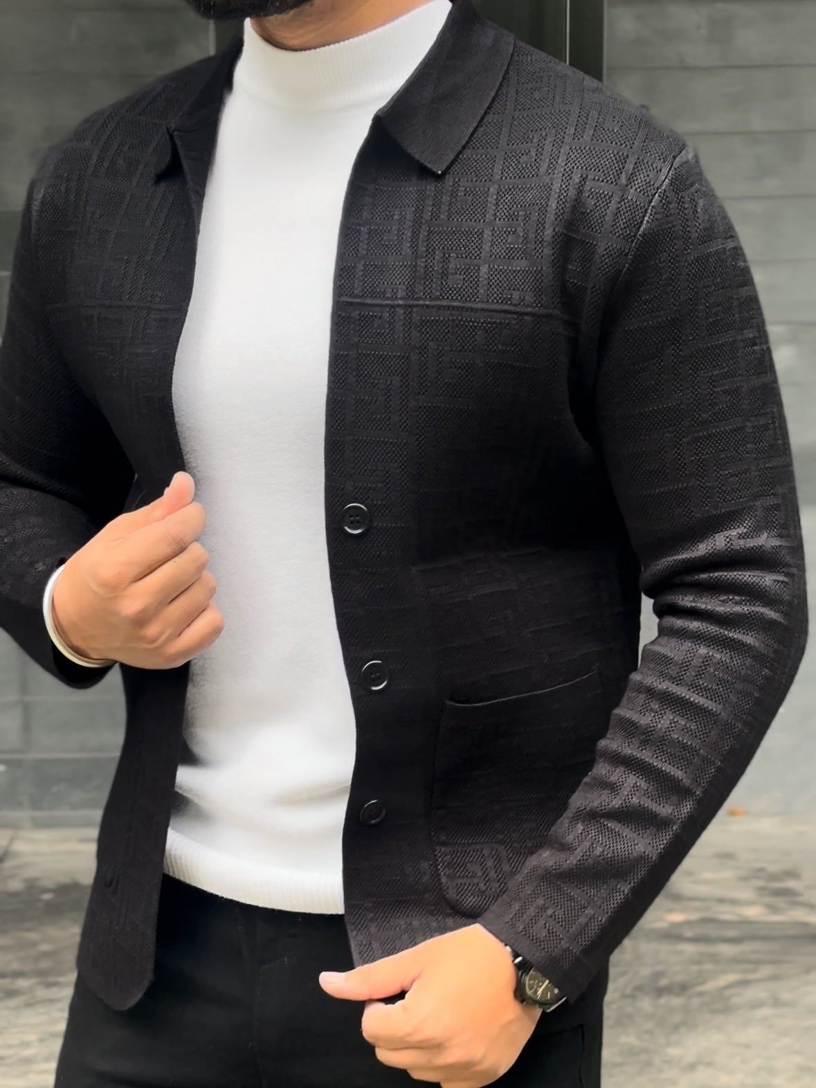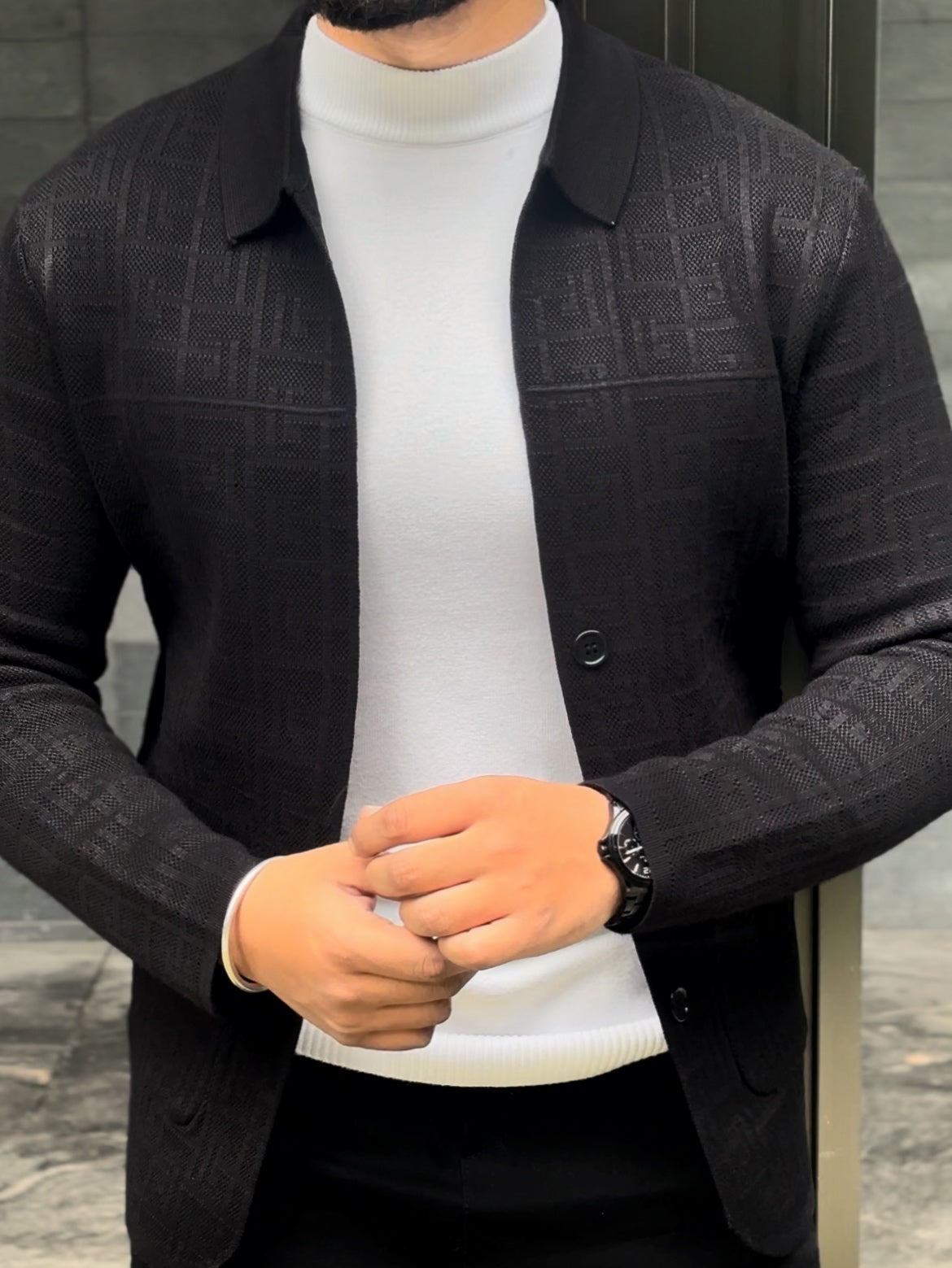 • The subtle geometric texture gives it a refined edge, while the classic button-down design keeps it versatile — pair it with a white tee for casual class or layer it over a turtleneck for elevated evenings.