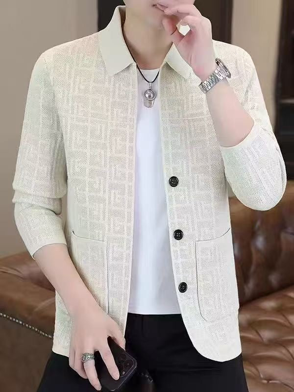 • The subtle geometric texture gives it a refined edge, while the classic button-down design keeps it versatile — pair it with a white tee for casual class or layer it over a turtleneck for elevated evenings.