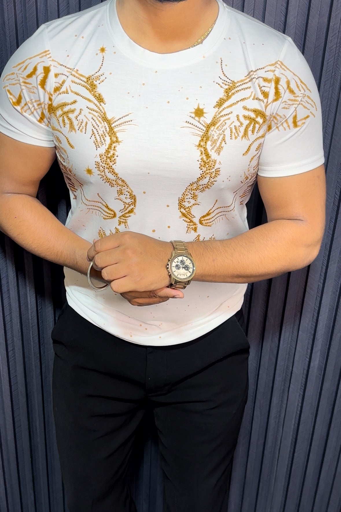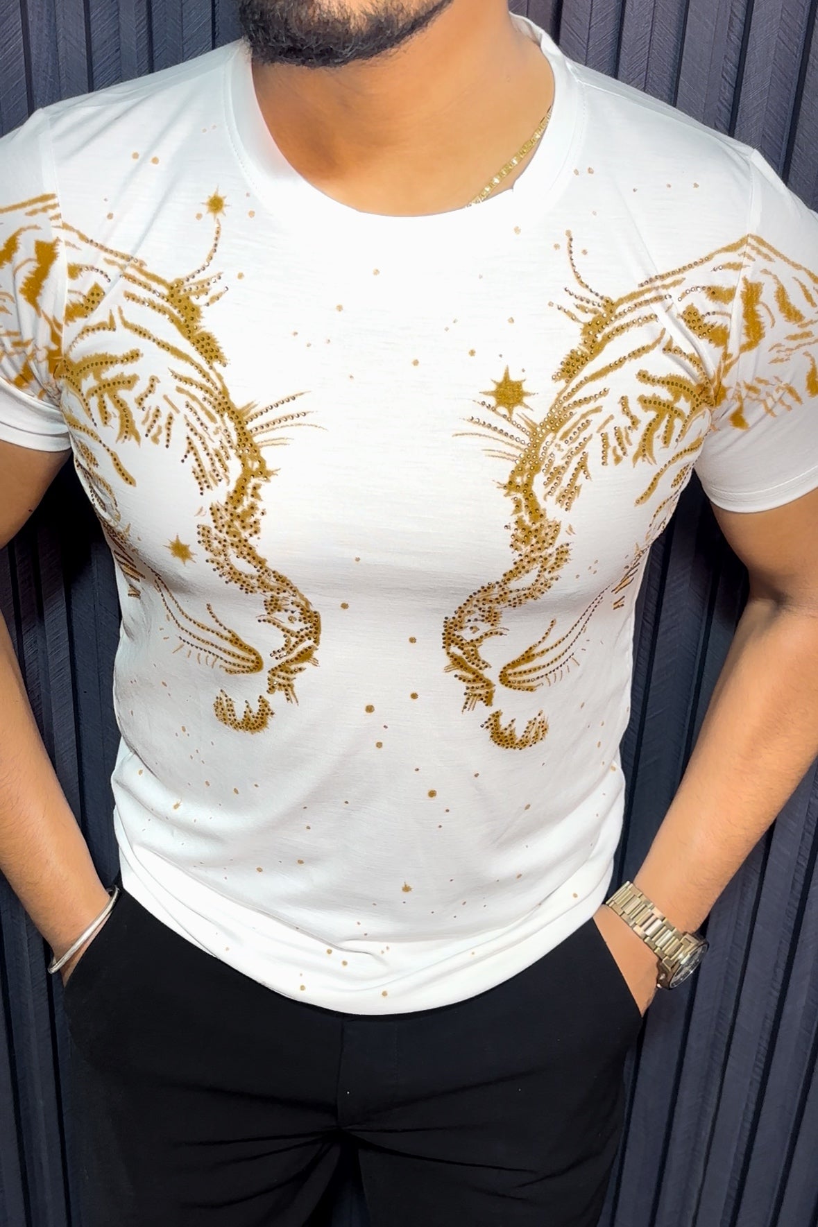 Tiger Double Face Half Sleeves Tshirt - White