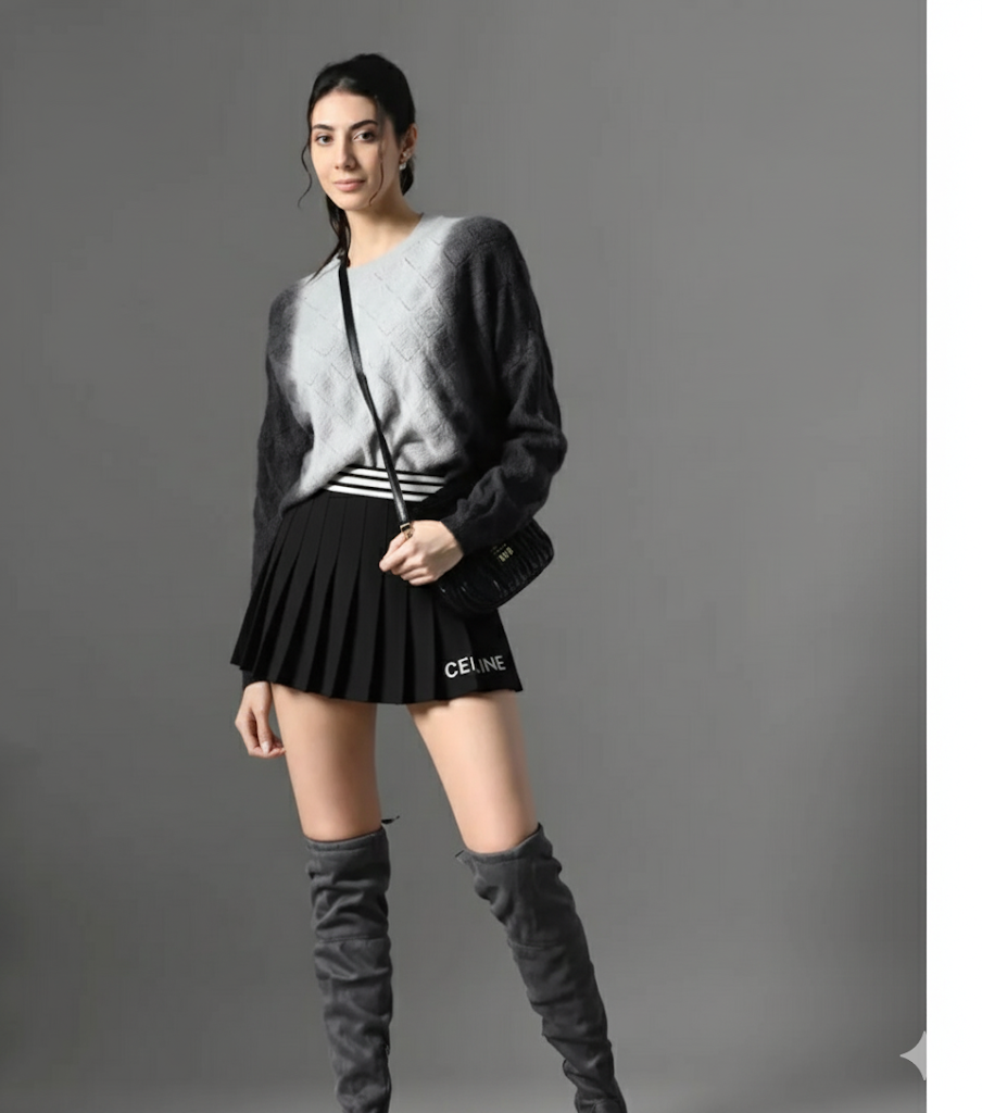 Where timeless elegance meets winter warmth. This tweed pleated skirt is designed to be your go-to statement piece for the season—structured, versatile, and effortlessly chic.