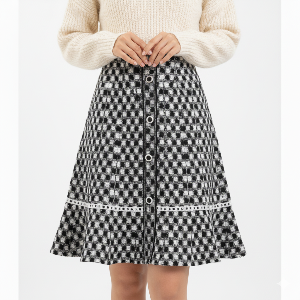 Tweed Plait Checkered Winter Party Wear Skirt 568 - Black