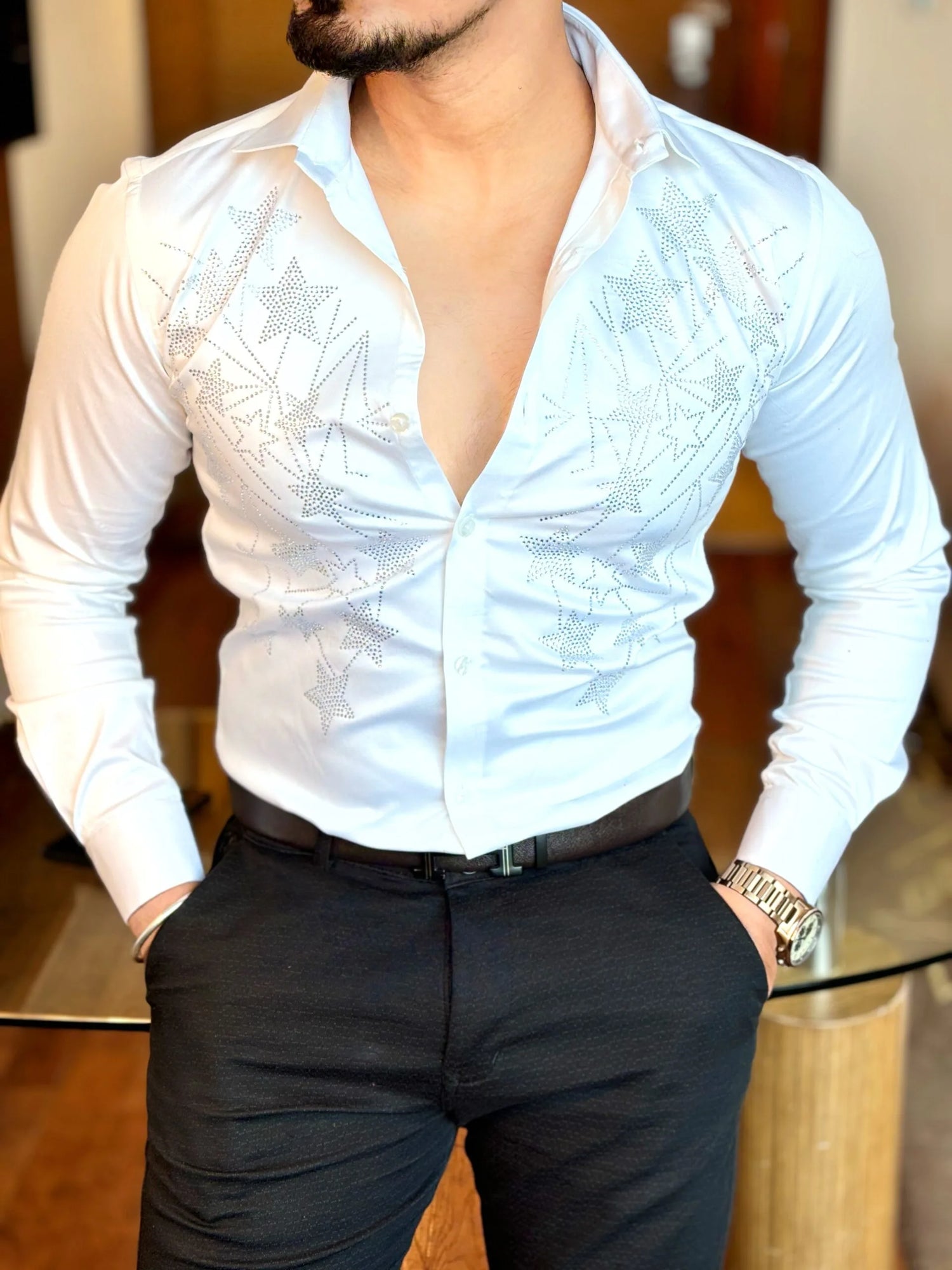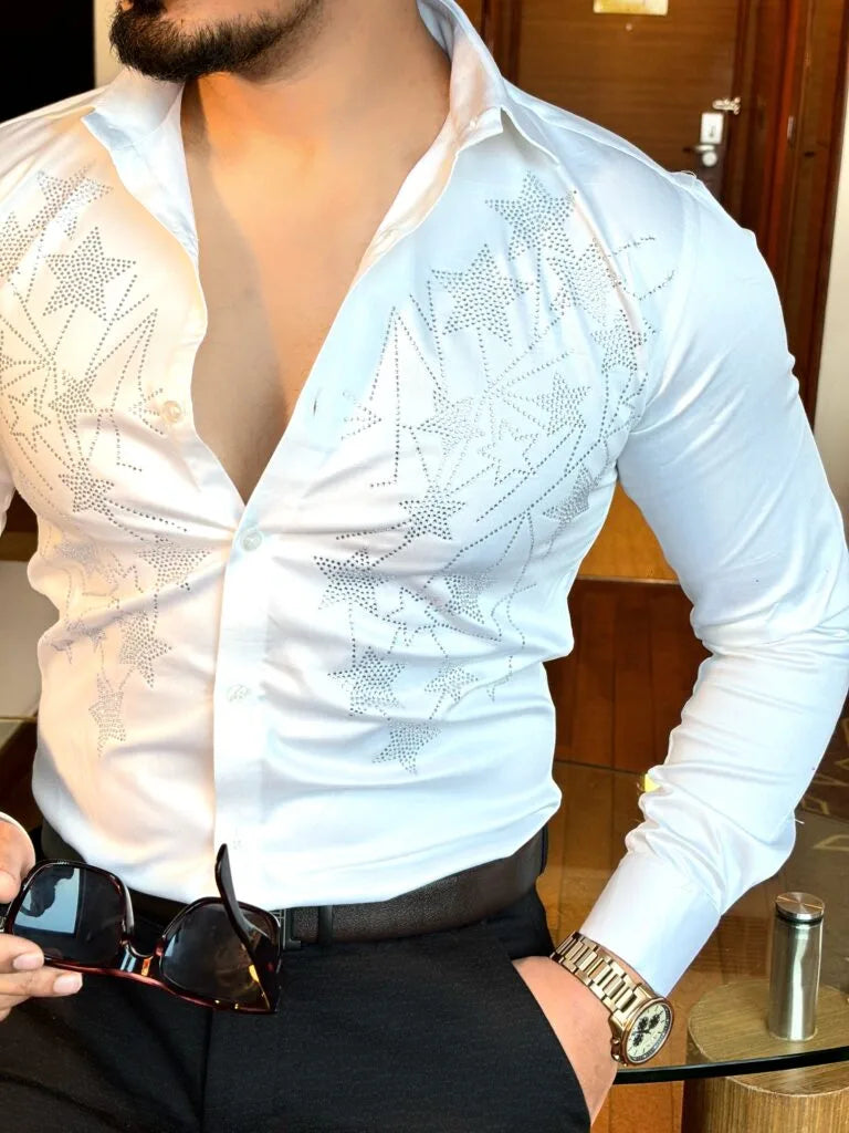 Step up your fashion game with Under Attack’s Premium Embellished Shirts—designed for men who embrace confidence and individuality. Crafted from high-quality Giza Cotton Lycra, these shirts offer unmatched comfort, breathability, and a sleek drape that keeps you looking sharp all day. Whether dressing up for a casual outing or making a statement at an evening gathering, these versatile prints ensure you’re always in the spotlight.