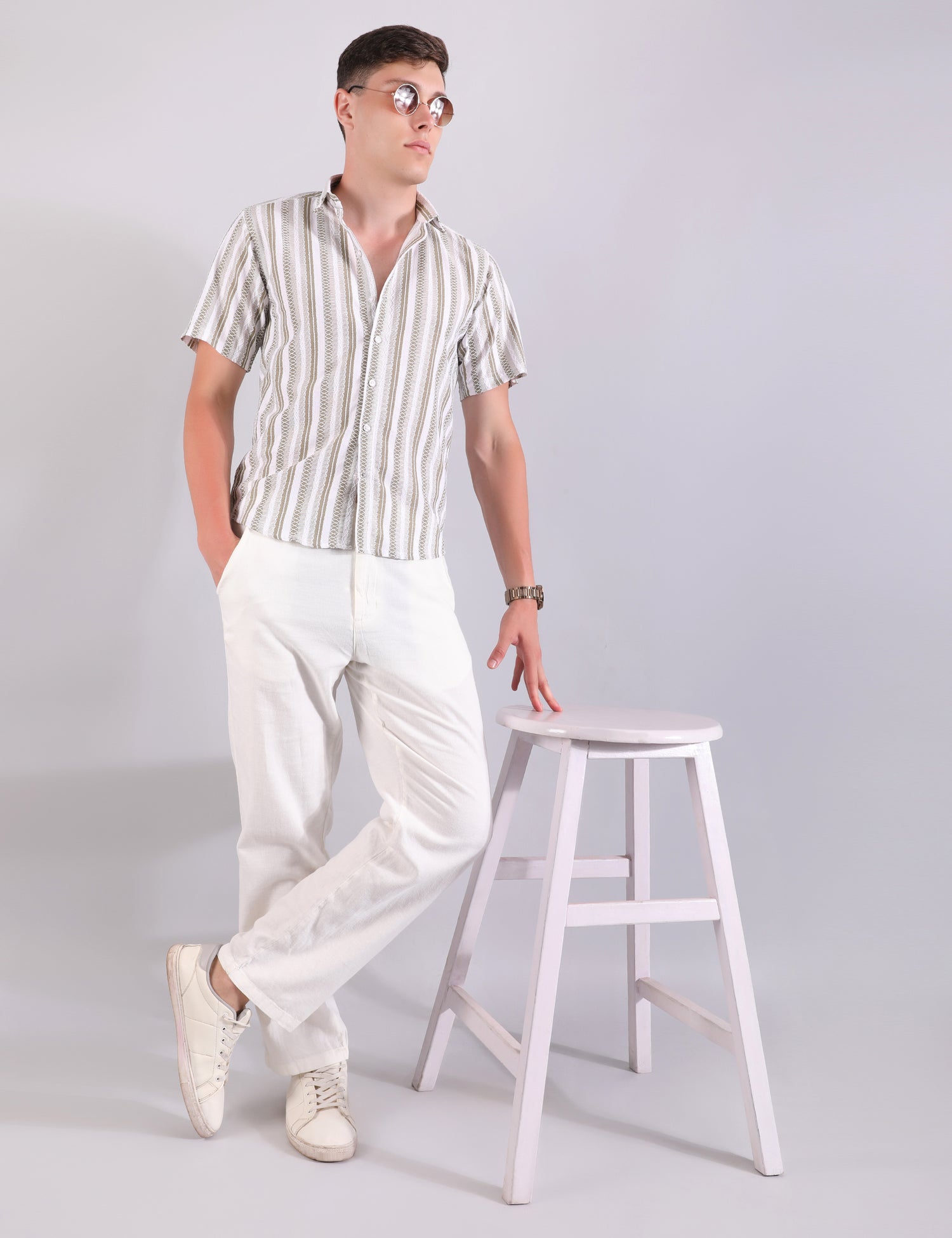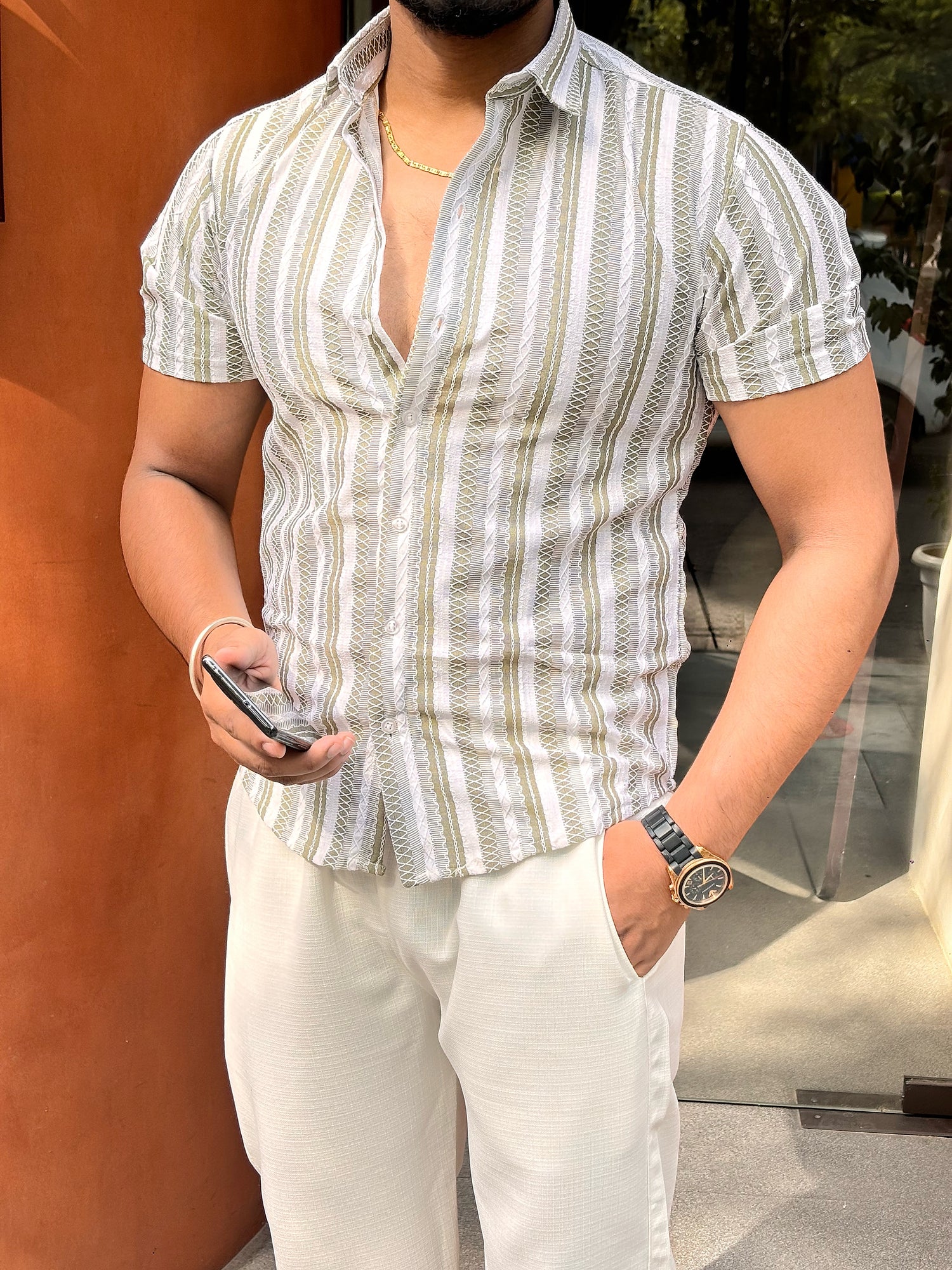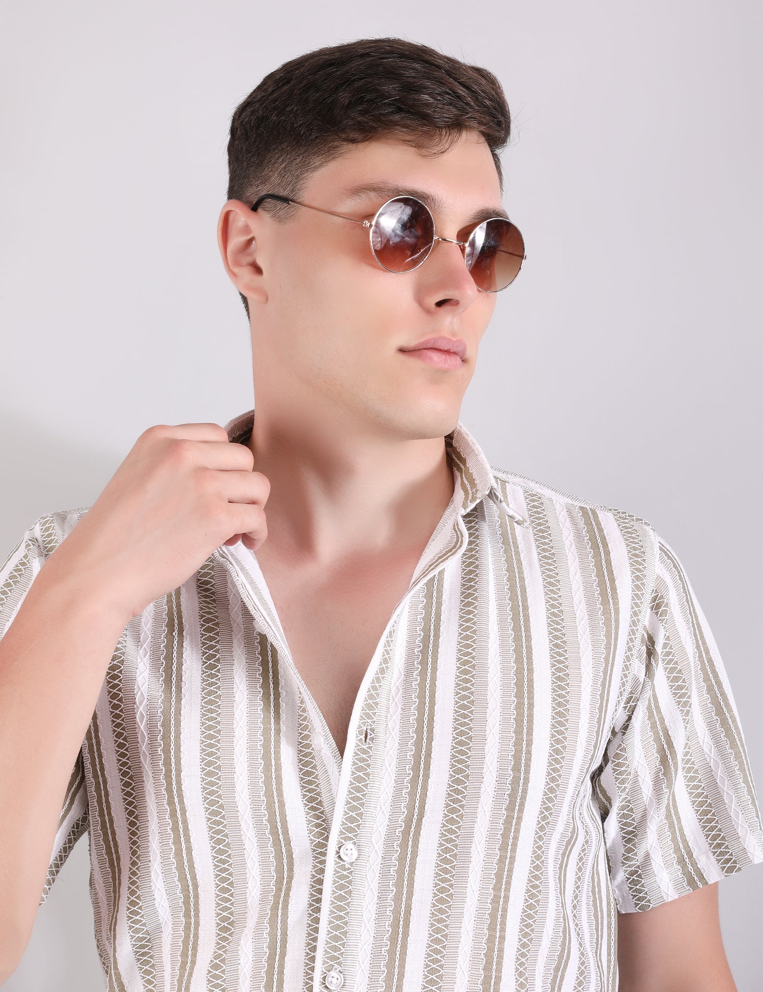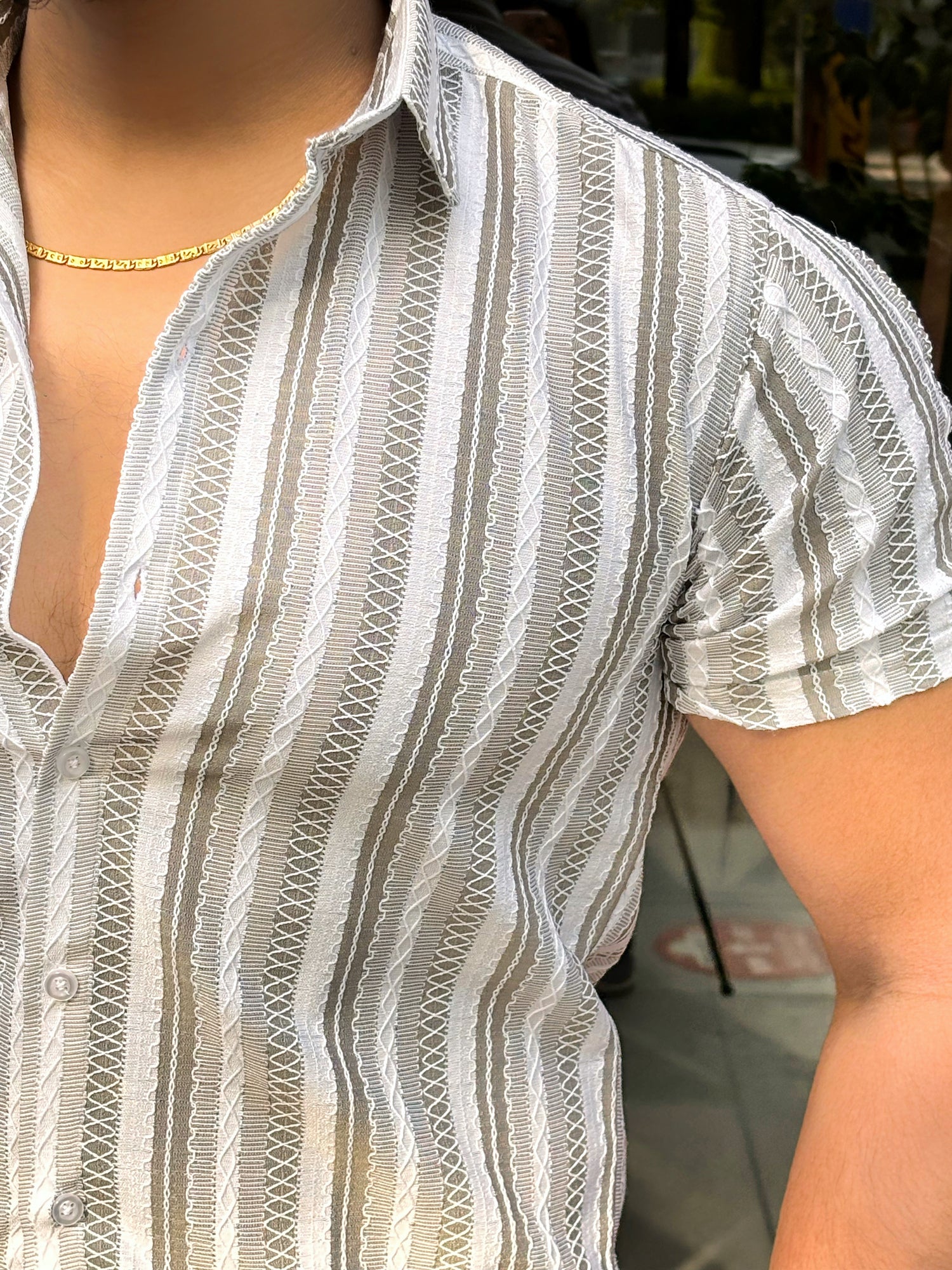 Elevated design with embroidery detailing. This Shirt features embroidered details on the garment, adding a refined touch to a classic silhouette. The Cuban collar, button-up front, and regular fit ensures a sharp and tailored appearance.
