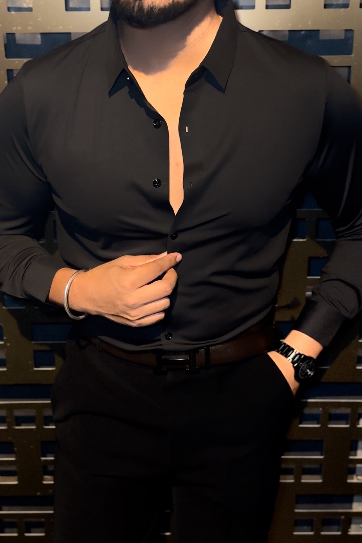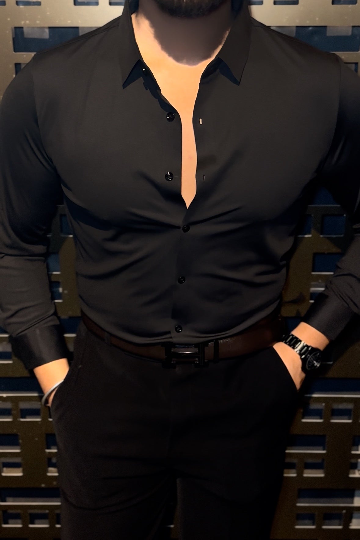 Solid Wrinkle-Free Stretch Lycra Shirt - Black