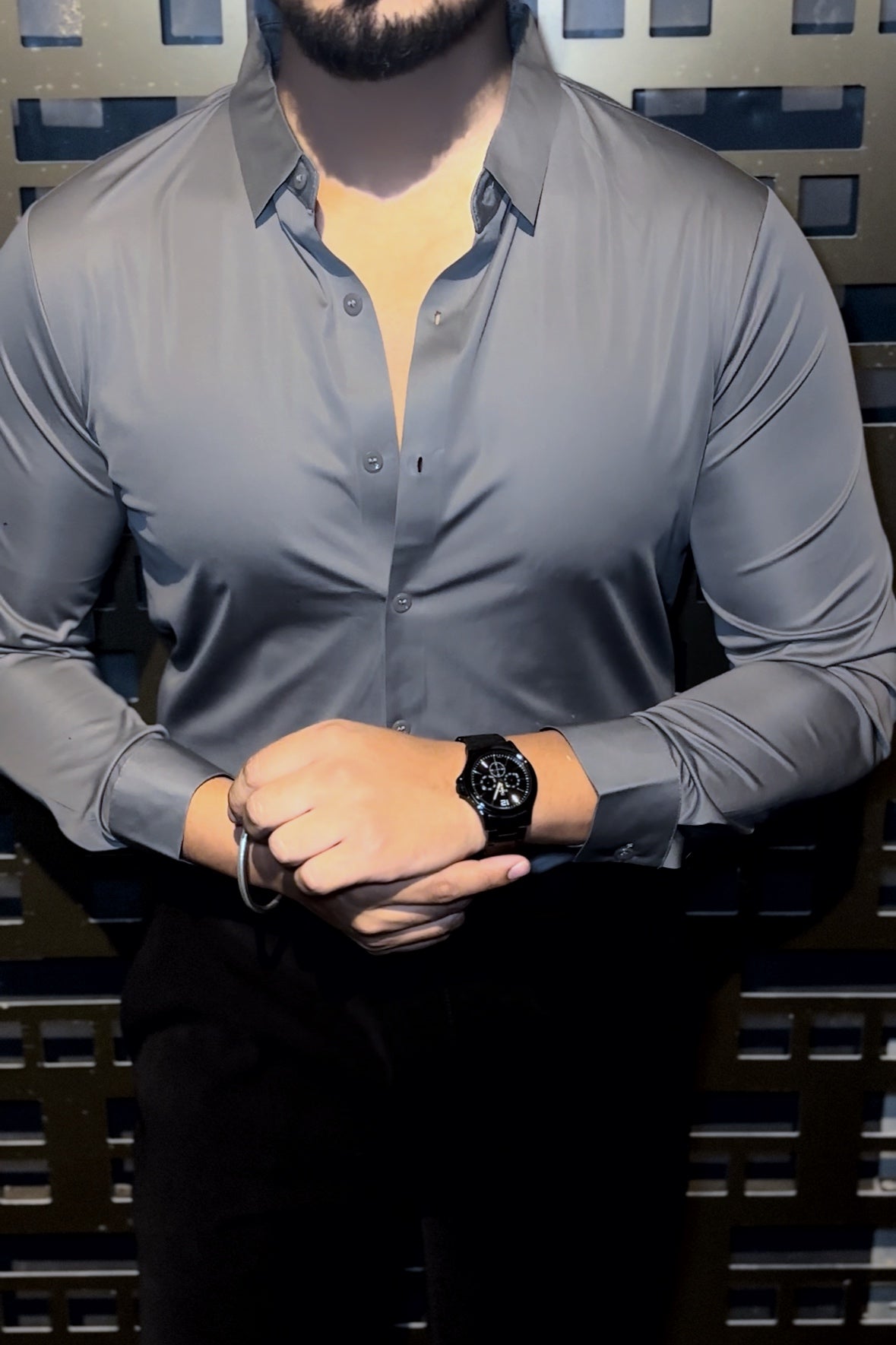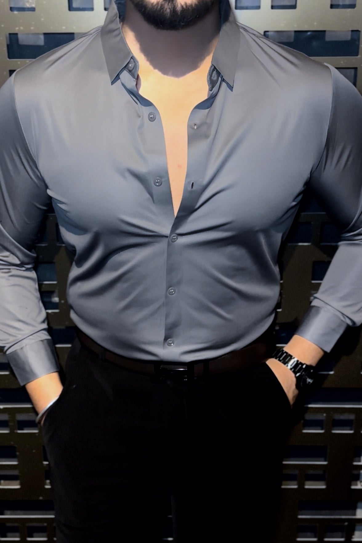 Solid Wrinkle-Free Stretch Lycra Shirt - Charcoal