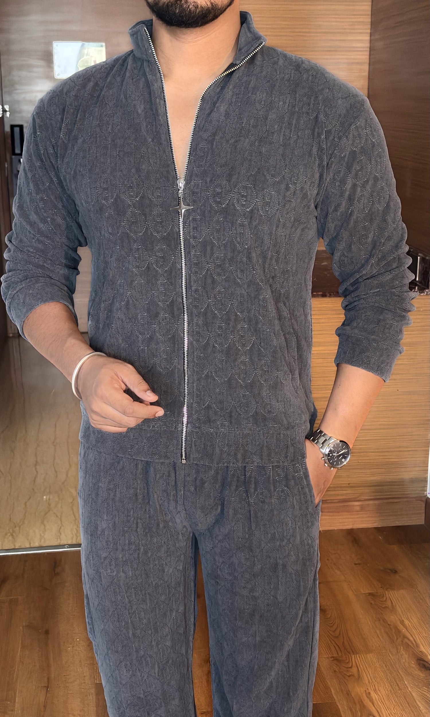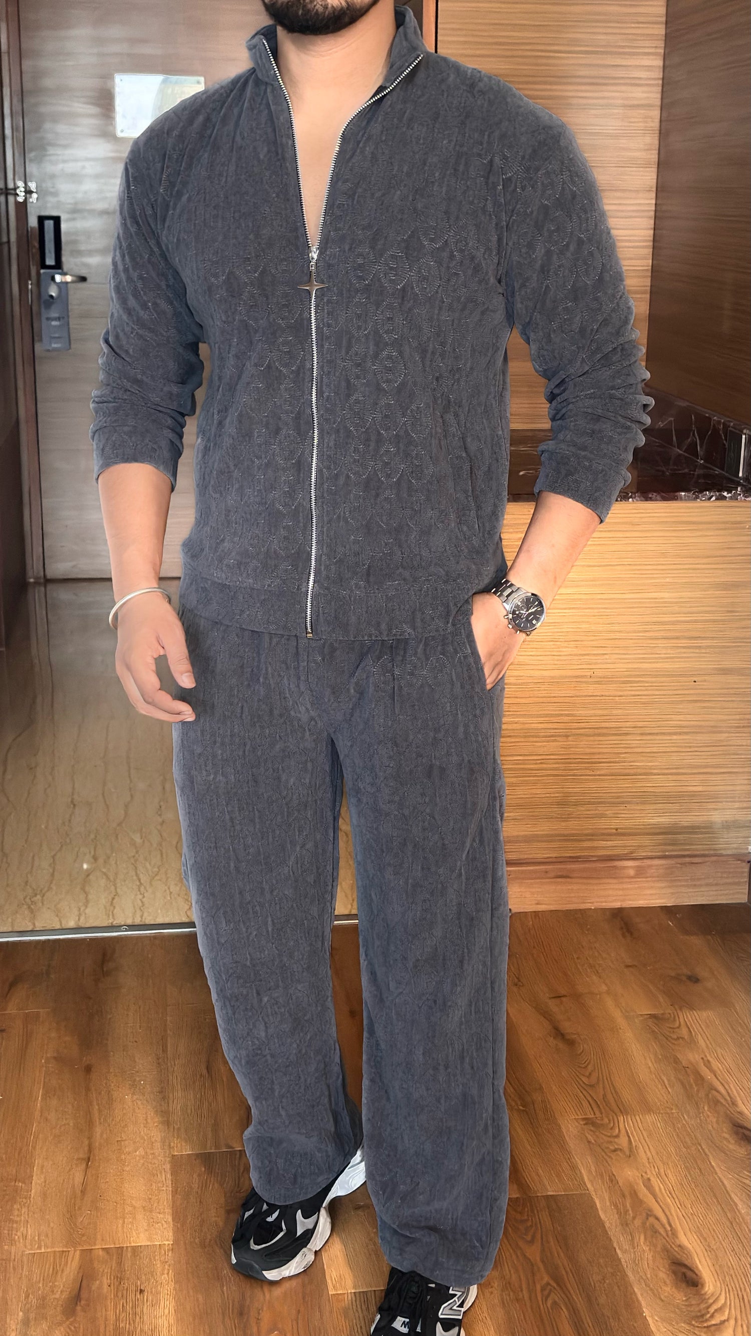 Cozy Embossed Tracksuit - Charcoal