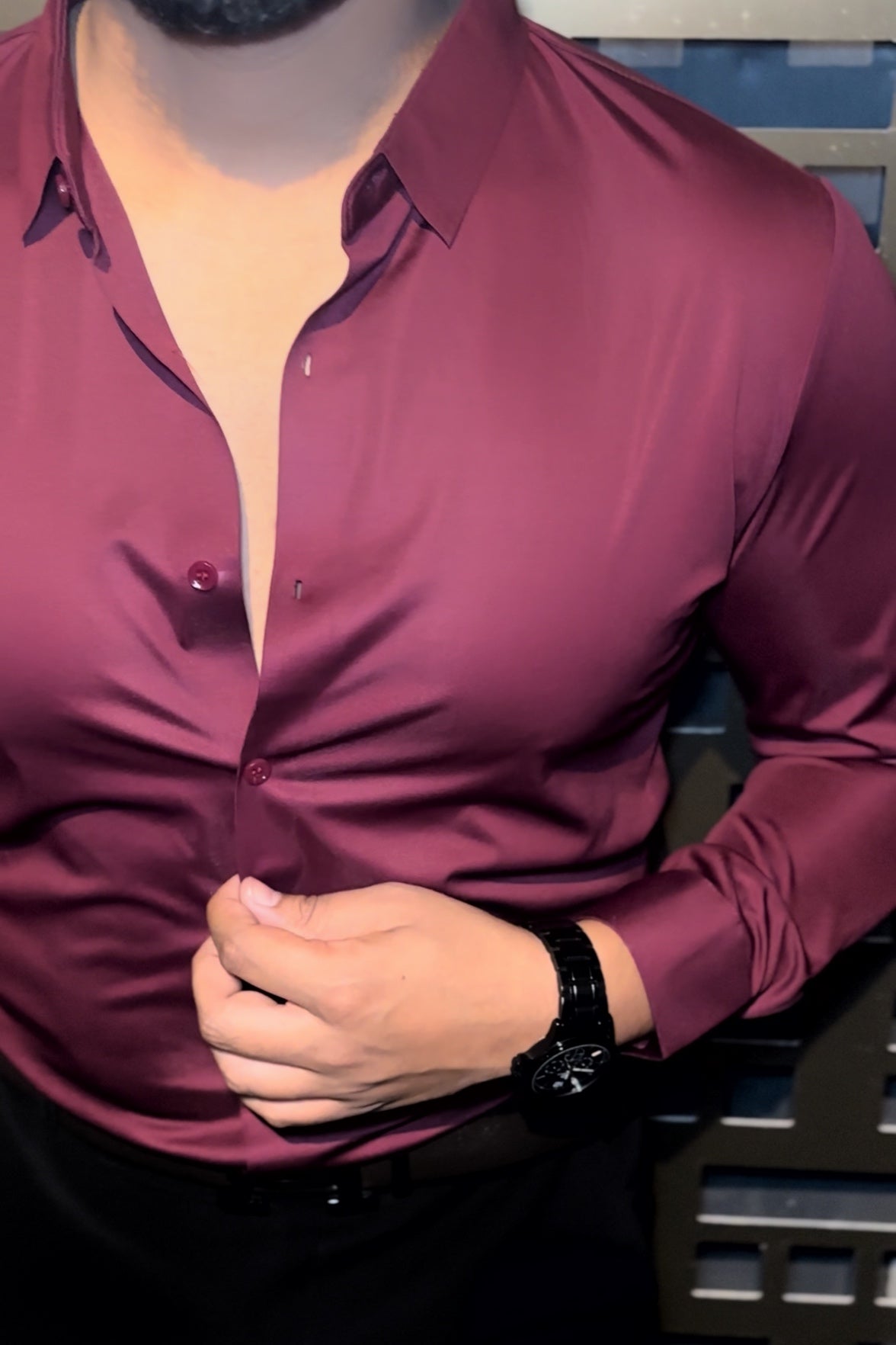 Solid Wrinkle-Free Stretch Lycra Shirt - Wine